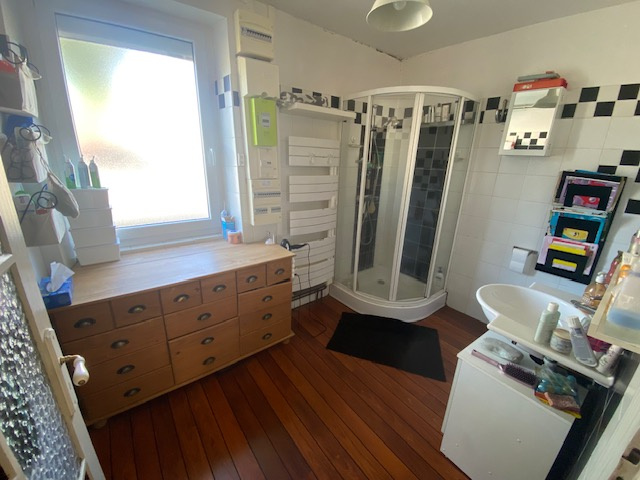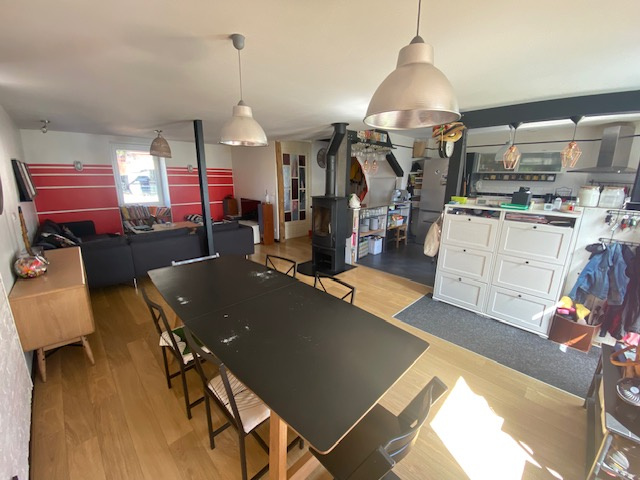 -Au RDC : entrée/salle à manger/cuisine équipée/séjour ( 54 M2) + salle d'eau avec WC.