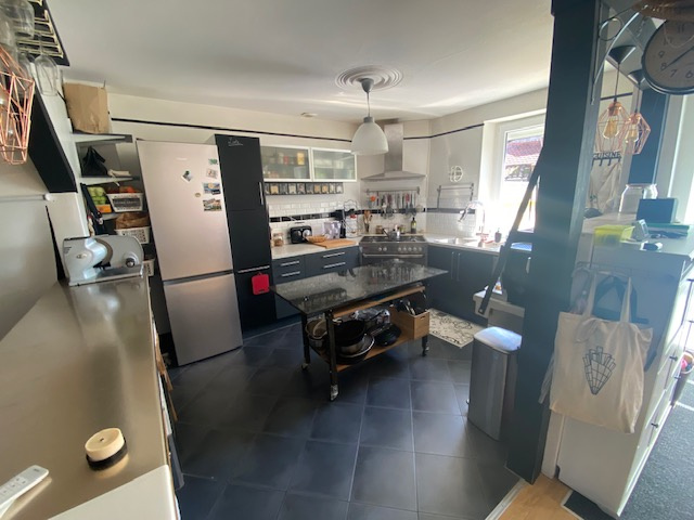 La cuisine est équipée d'éléments hauts et bas , d'un réfrigérateur de 2 ans , d'une gazinière , d'une hotte et d'un lave vaisselle.