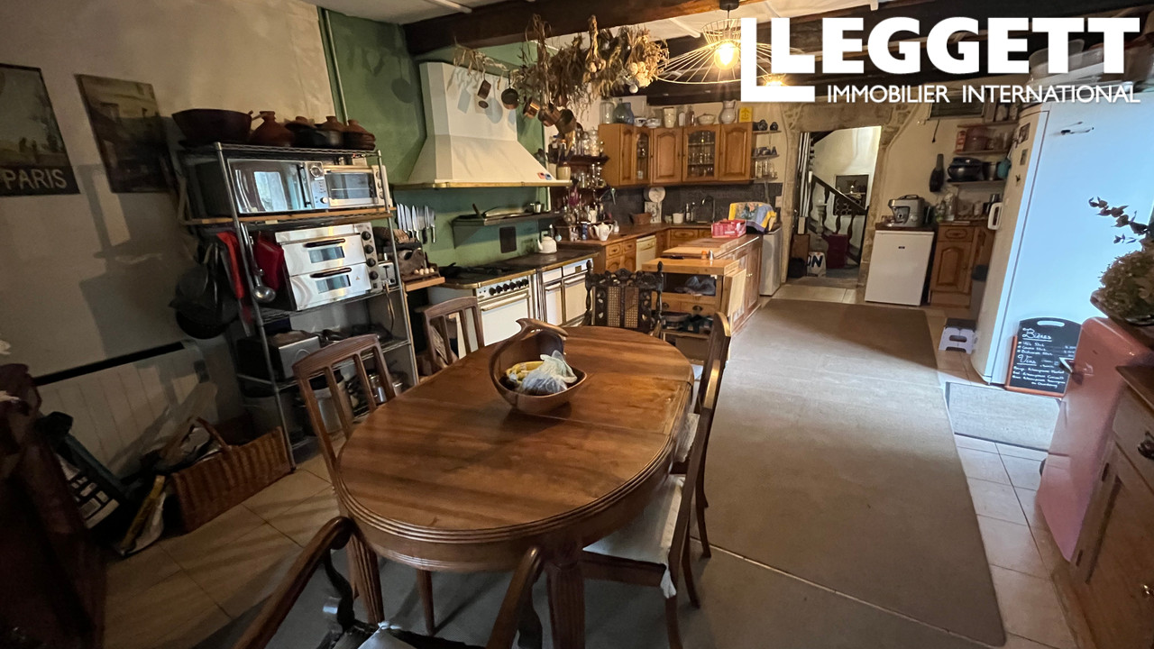 A25268DAC87 - Une grande et charmante maison historique en pierre avec une terrasse surplombant la rivière Vienne, anciennement utilisée pour un restaurant et des chambres d'hôtes. La propriété dispose de quatre chambres avec salle de bains, d'une belle cuisine, d'un parking hors route, d'un garage et d'une courte marche vers le centre du bourg historique d'Eymoutiers. Idéale pour une grande maison familiale ou un bed and breakfast/restaurant/bar. Eymoutiers a des magasins, des cafés, des bars, des restaurants et un supermarché, et est ouvert toute l'année. Eymoutiers dispose également d'une gare avec des trains réguliers vers la ville de Limoges.