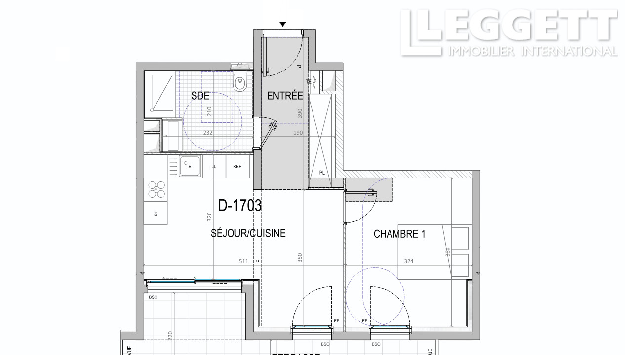 Le séjour et la chambre donnent accès à une terrasse de 10 m². Vous bénéficiez d'un séjour de 17m² avec cuisine ouverte (à équiper), d'une chambres, et d'une salle d'eau avec WC.