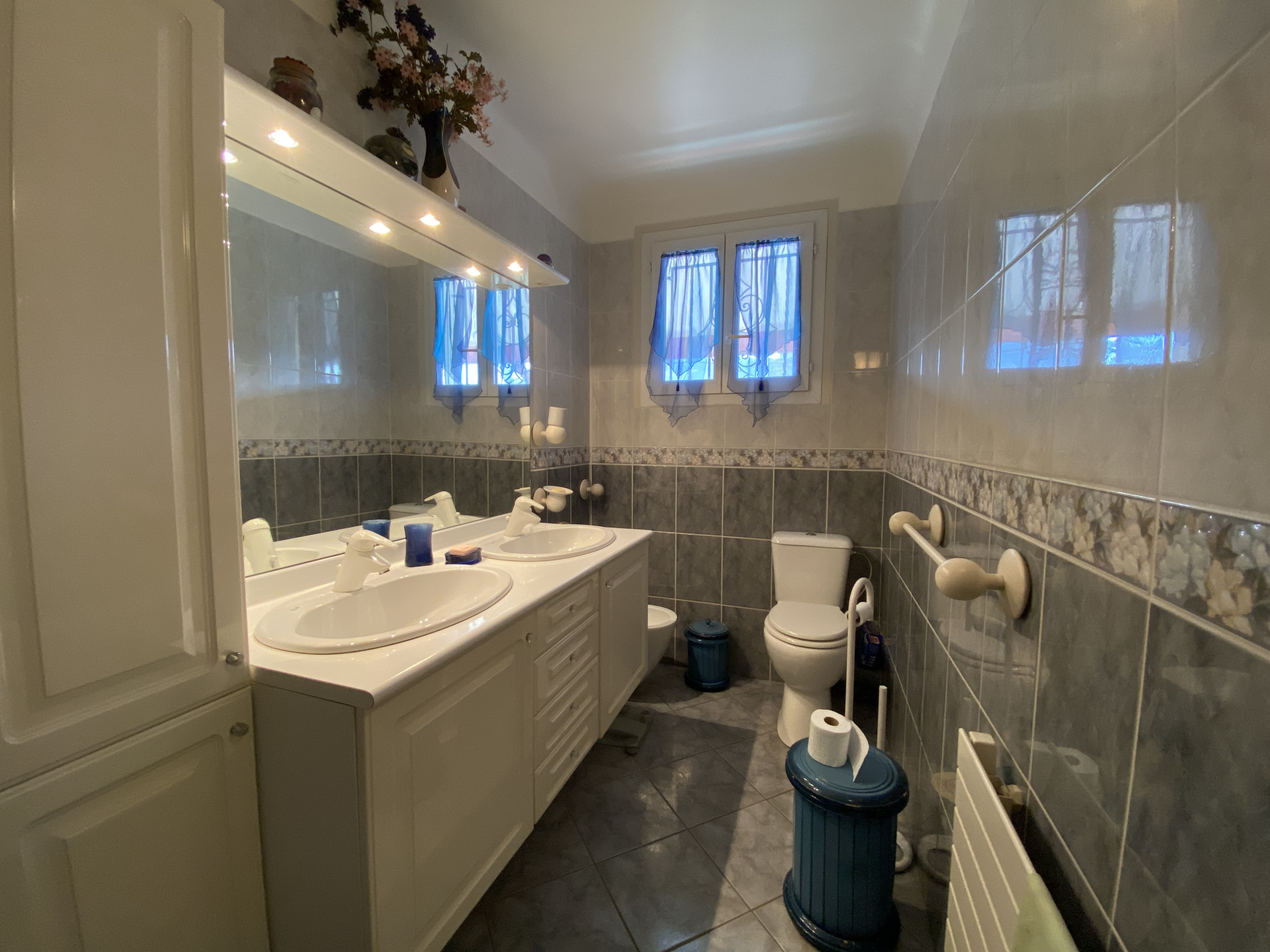 Spacieuse habitation de plain-pied comprenant une entrée sur salon, cuisine américaine et salle à manger avec coin cellier, accès sur terrasse couverte de 23,50 m2 orientée plein Sud, quatre belles chambres avec placards dont une avec salle de bain privative, salle de douche principale, et WC séparé. Grenier aménageable. Chauffage au fioul et aspiration centralisée.