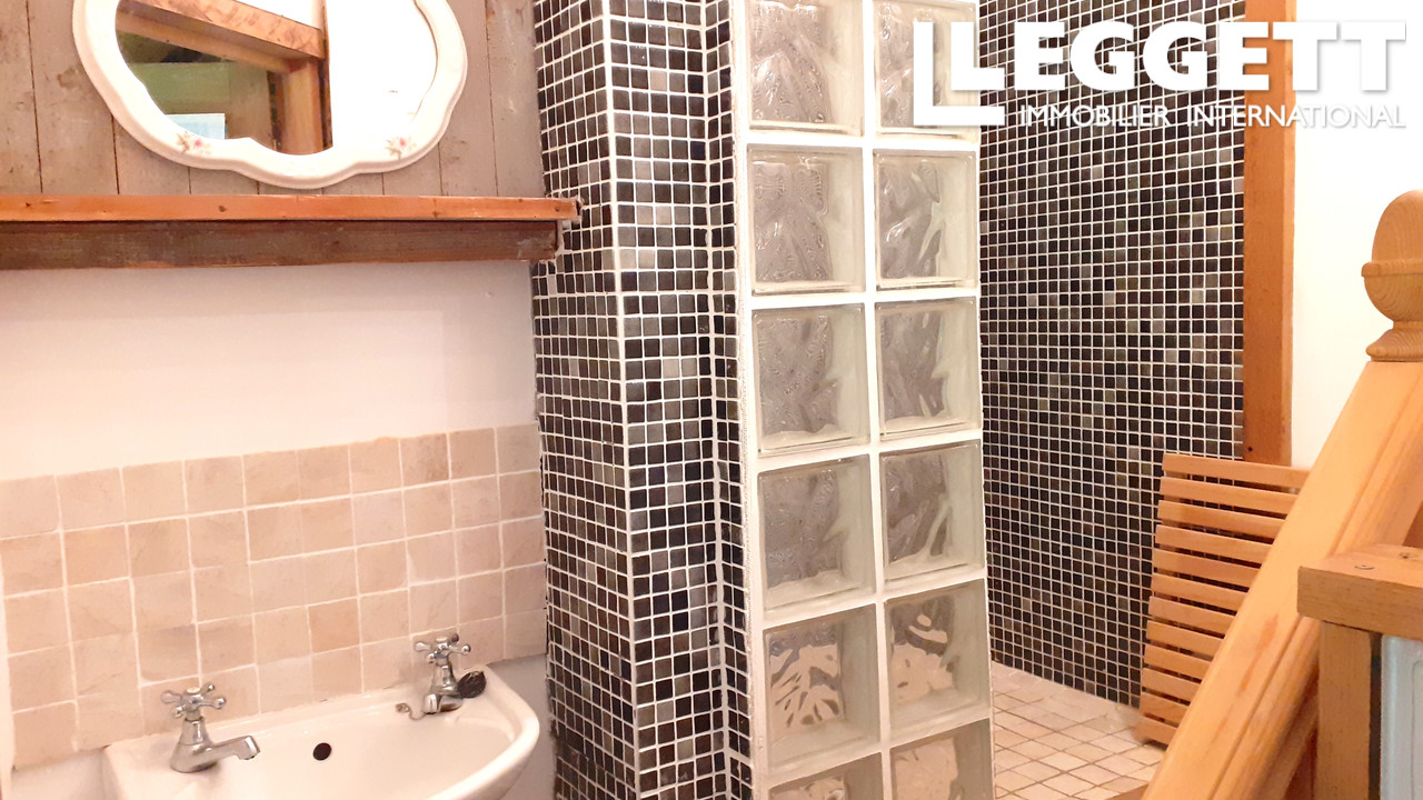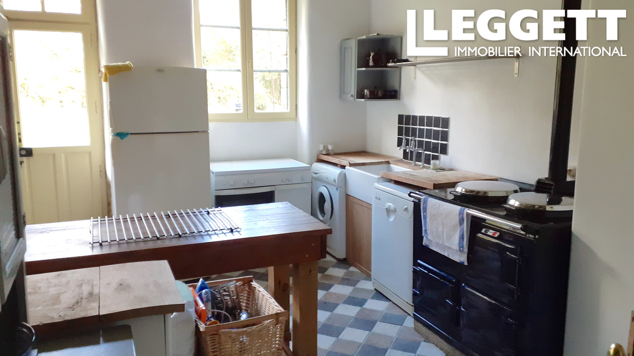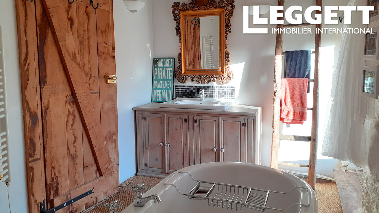 Au rez-de-chaussée, la maison propose un bel espace ouvert comprenant un grand salon/salle à manger d'environ 37 m² avec poêle à bois, ouvert sur une cuisine de style campagnard d'environ 17 m² et équipée d'un piano de cuisson Aga. Une petite salle d'eau joliment rénovée avec douche à l'italienne en mosaïque, lavabo et WC complète cet étage.