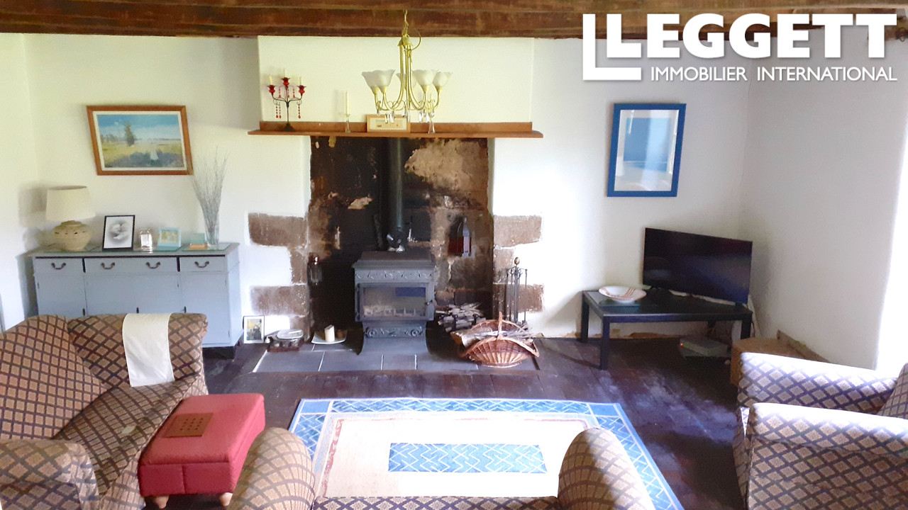 A25537ILH35 - Cette maison de campagne située au calme à 2 km du village de La Fontenelle a beaucoup à offrir. Elle combine modernité et éléments d'origine qui lui confèrent une atmosphère douce et chaleureuse : parquets anciens, poutres et murs apparents, cheminée en granit.