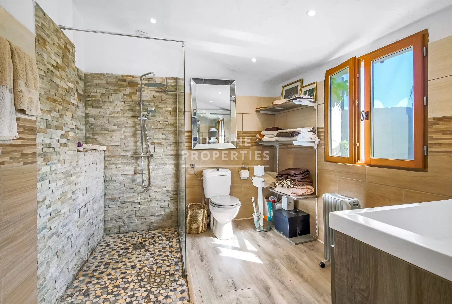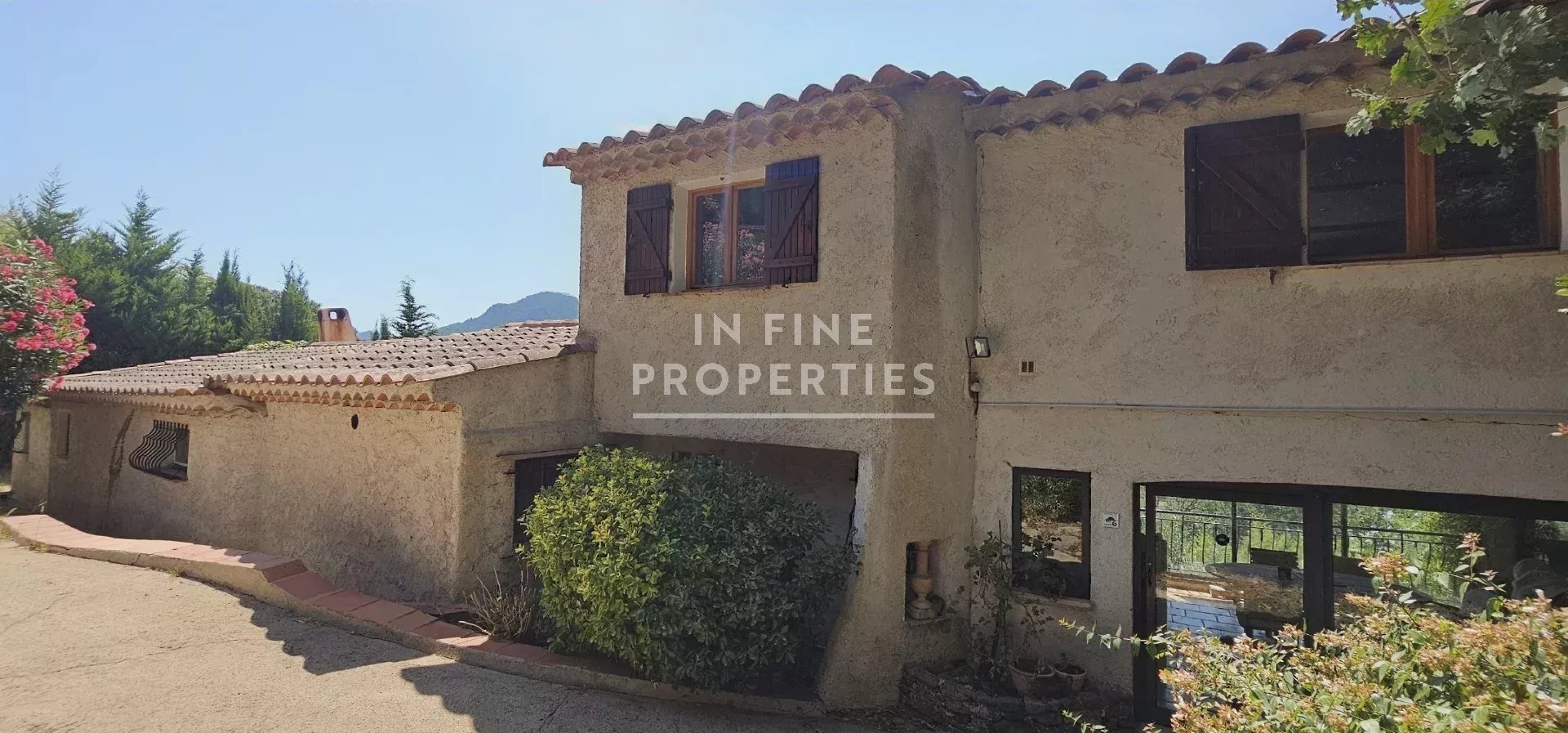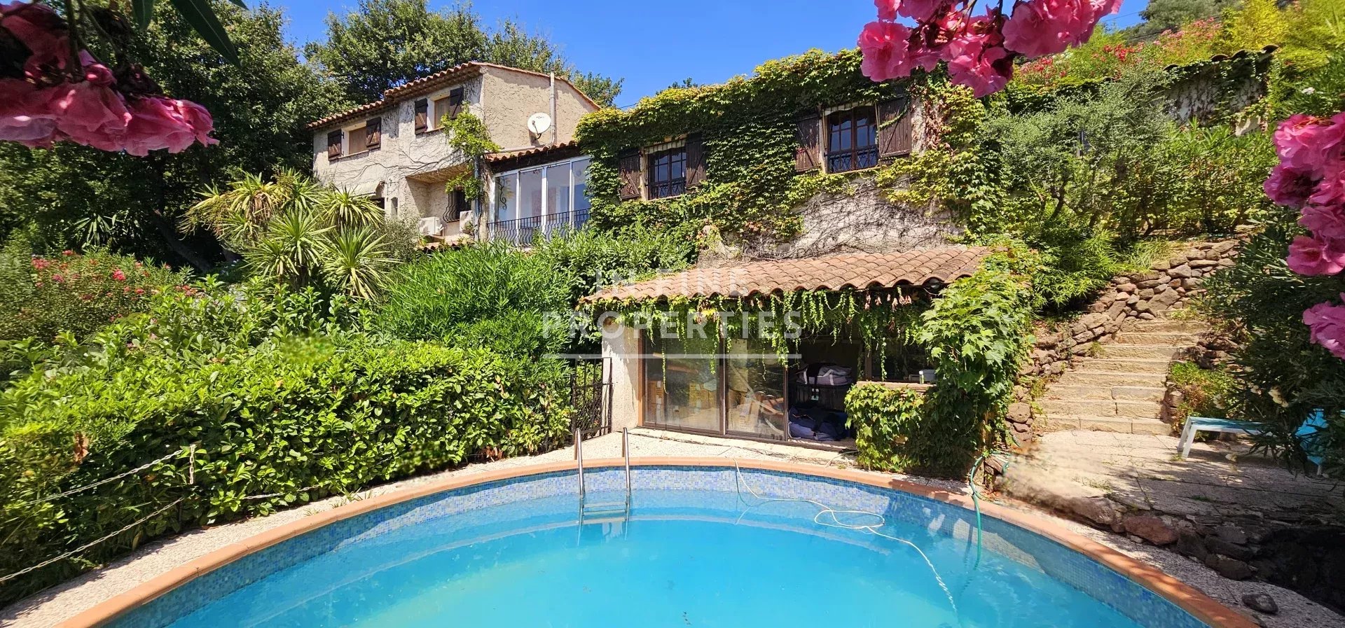 Vous trouverez de plain pied la véranda ouverte sur la verdure,une buanderie, une cuisine équipée ouverte sur un vaste séjour, salle à manger avec cheminée toutes ses pièces bénéficient d'une vue entièrement dégagée sur les montagnes de l'Esterel.