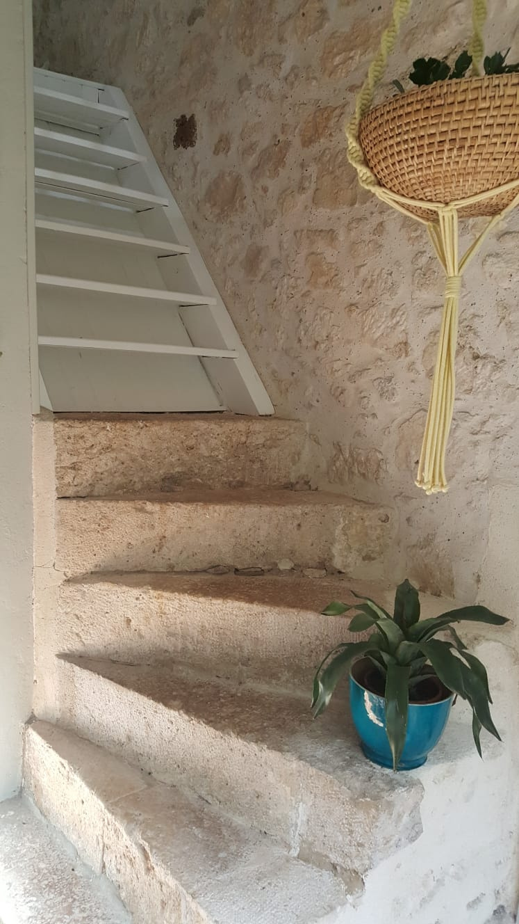UNE ESCALIER EN PIERRE VOUS AMENE SUR LA TERRASSE COUVERTE