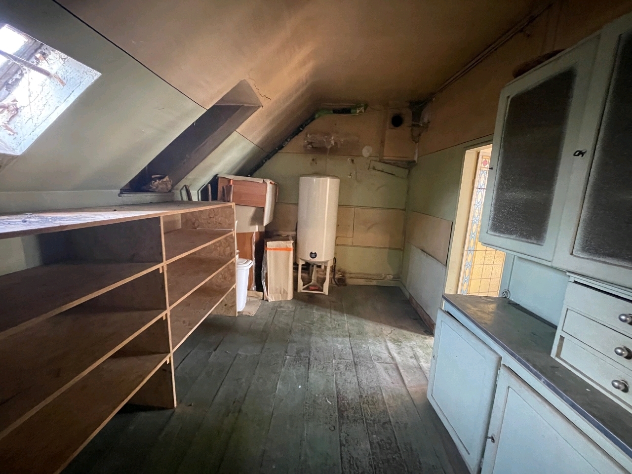 Au second : deux grandes chambres dont une avec alcôve (21 m² ; 32 m²), deux pièces mansardées et une salle de bains sont à réhabiliter entièrement.