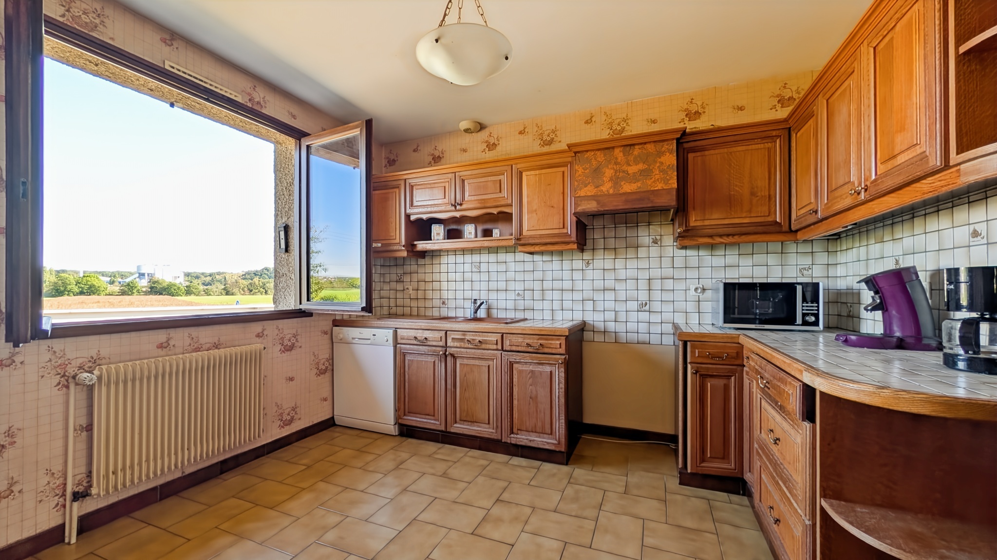 Cuisine séparée pouvant s'ouvrir sur la pièce de vie pour un espace convivial .