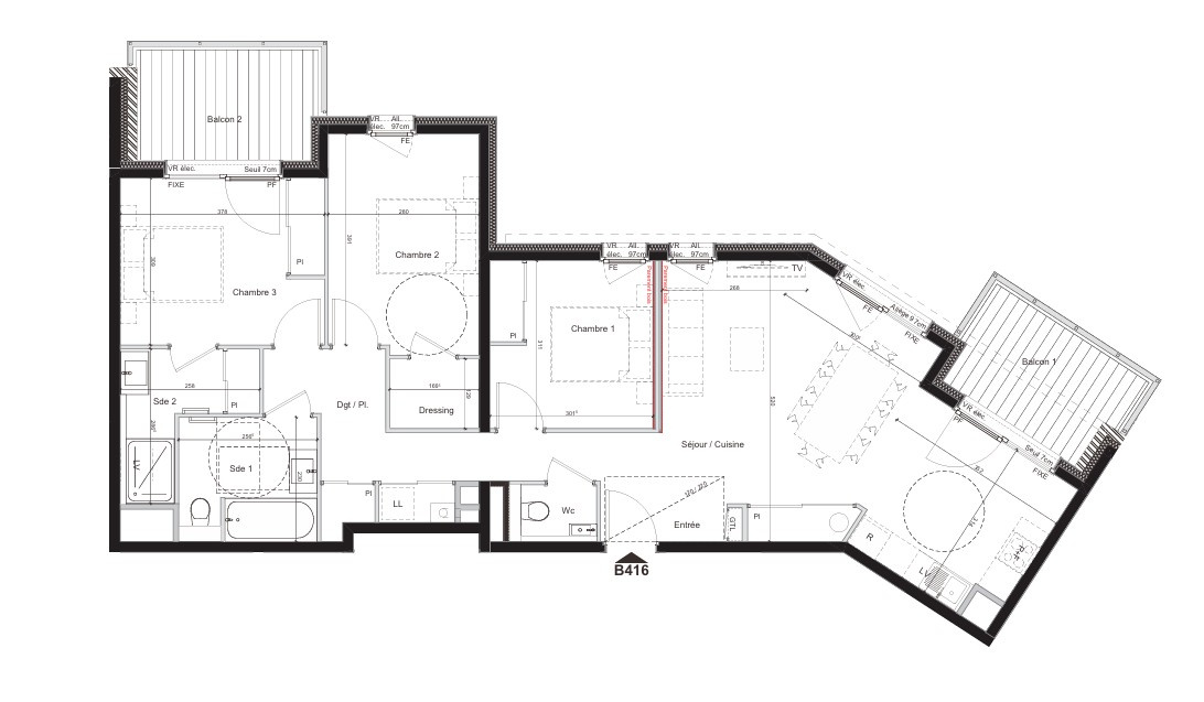 Du T2 au T5, les 25 logements disposent tous d'un balcon, d'une place de stationnement privative,d'un cellier sur le pallier et d'un accès au ski room et au local à vélos équipé.