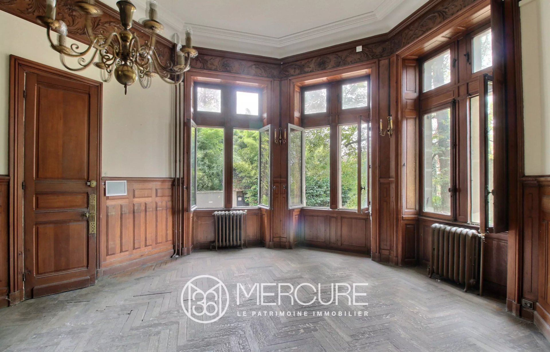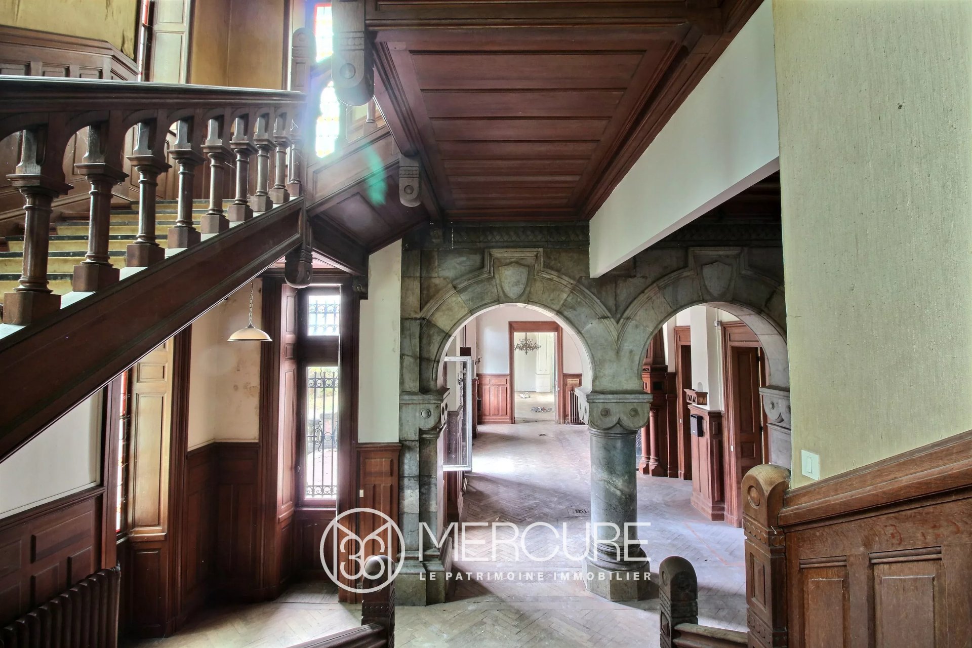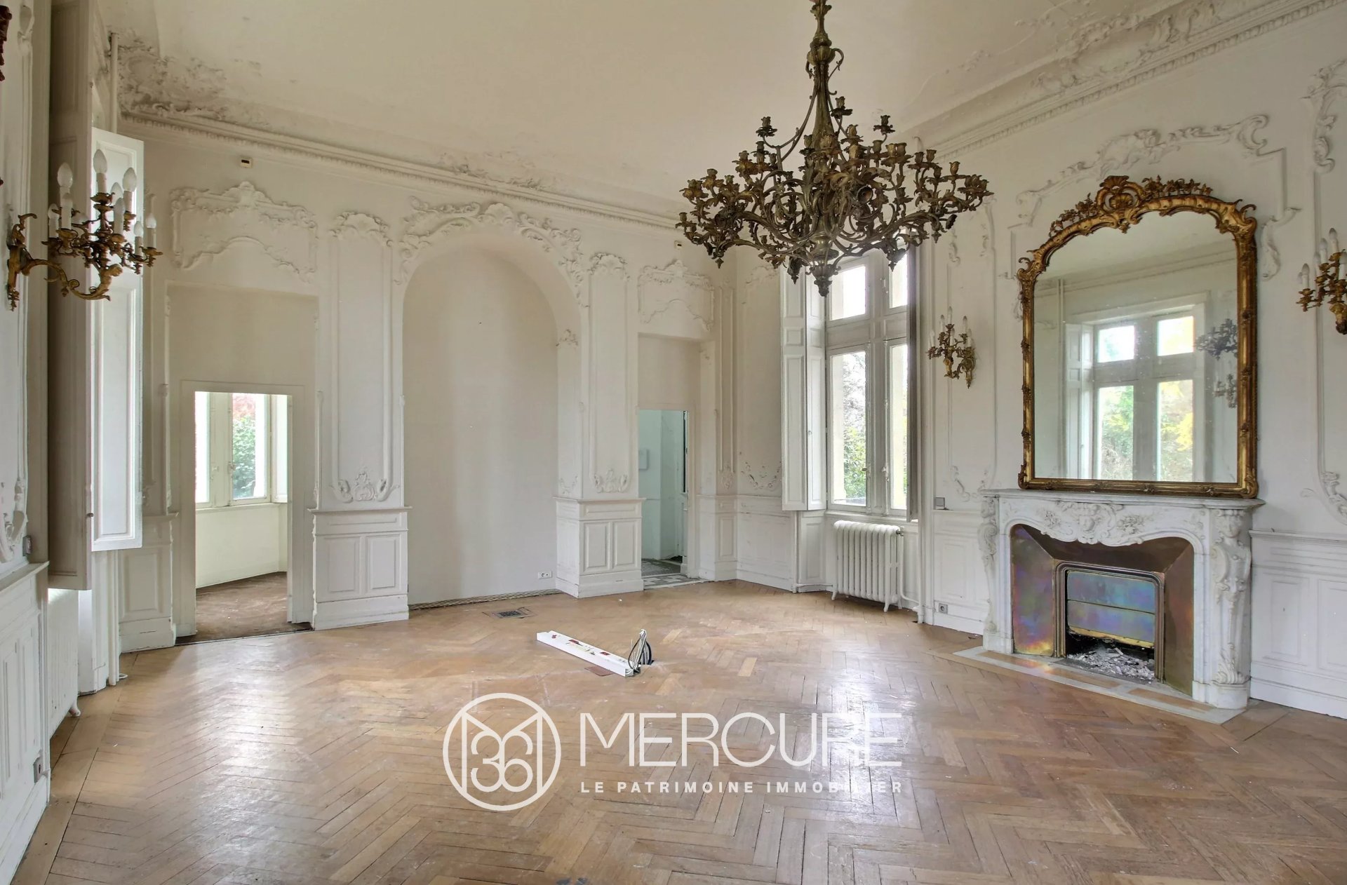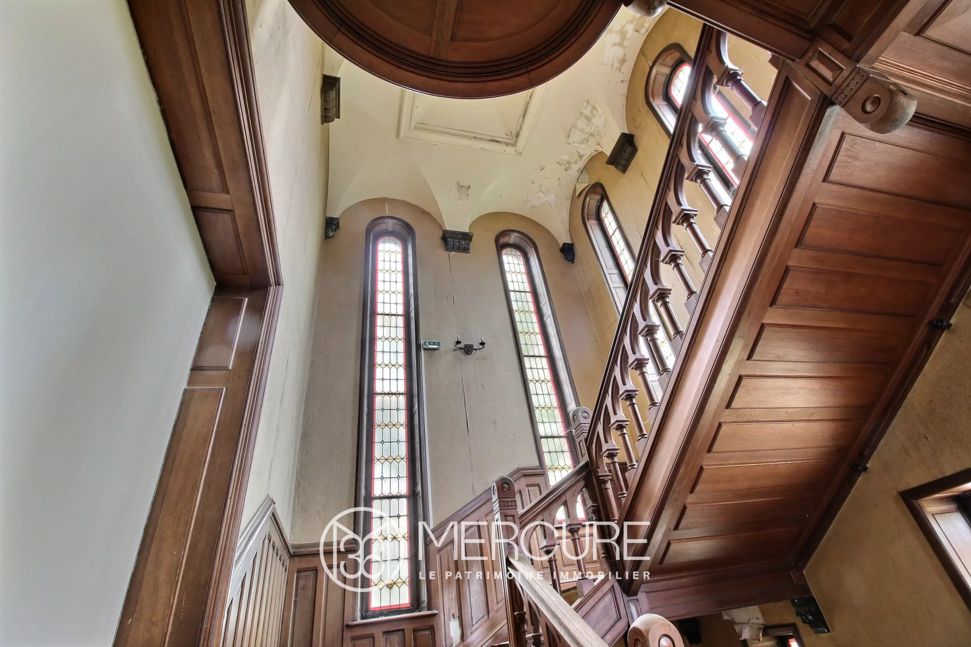 Architecture intérieure intacte et tous les éléments de décoration conservés : escalier monumental en chêne, grand salon style Louis XV, cheminées, parquets chêne, boiseries et frises murales. Classement Monument Historique possible.