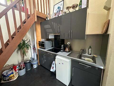 Cuisine aménagée et équipée ouverte sur salle à manger, 2 chambres dont une en mezzanine donnant sur une terrasse exposée sud ouest sans vis à vis .