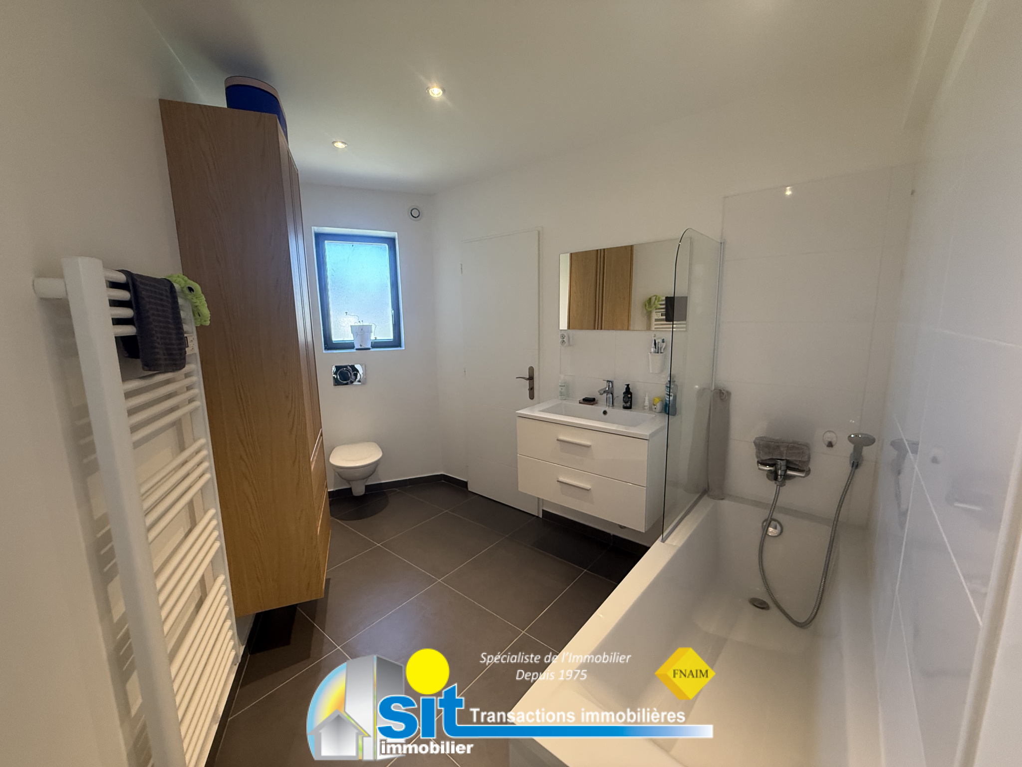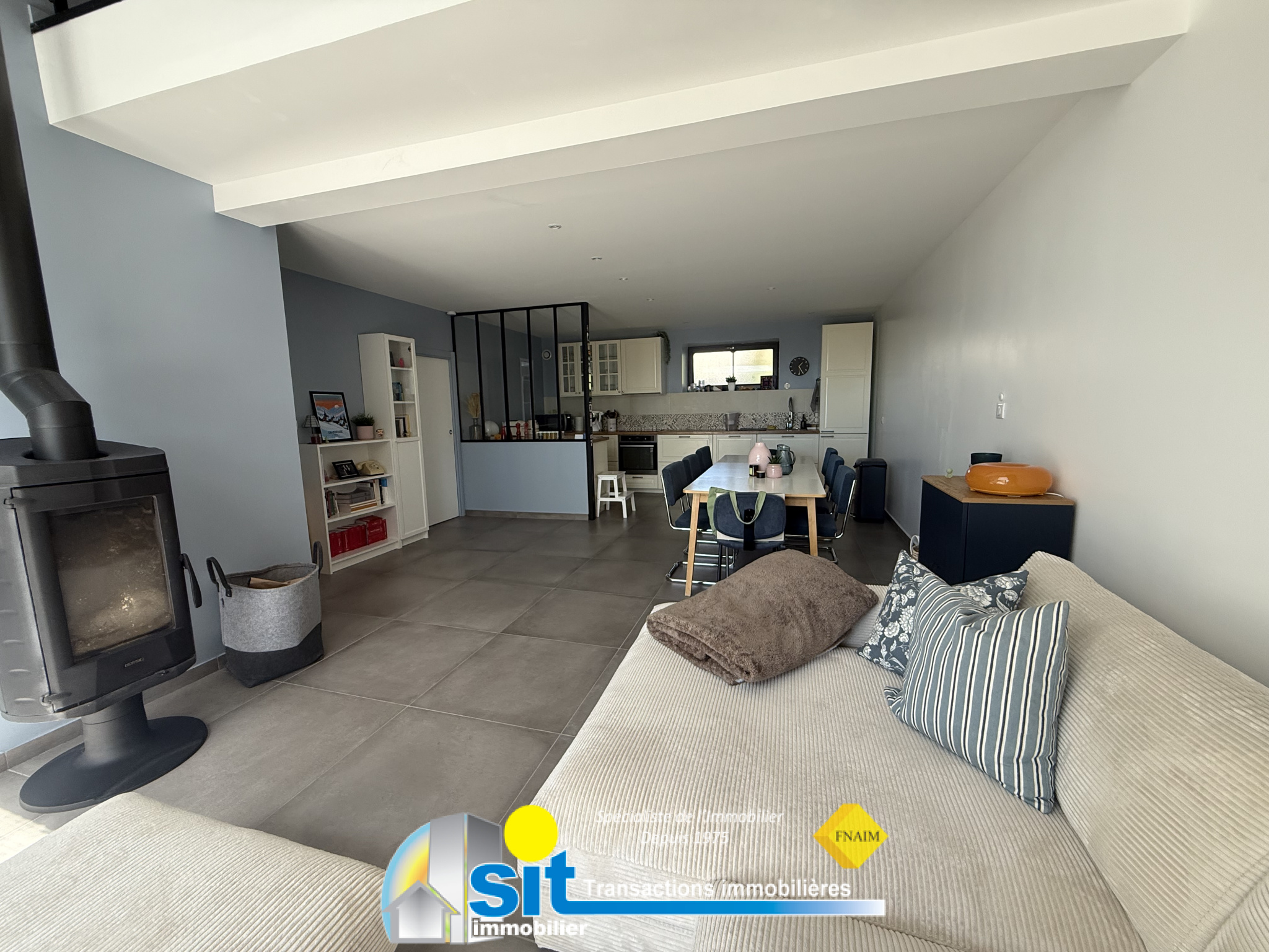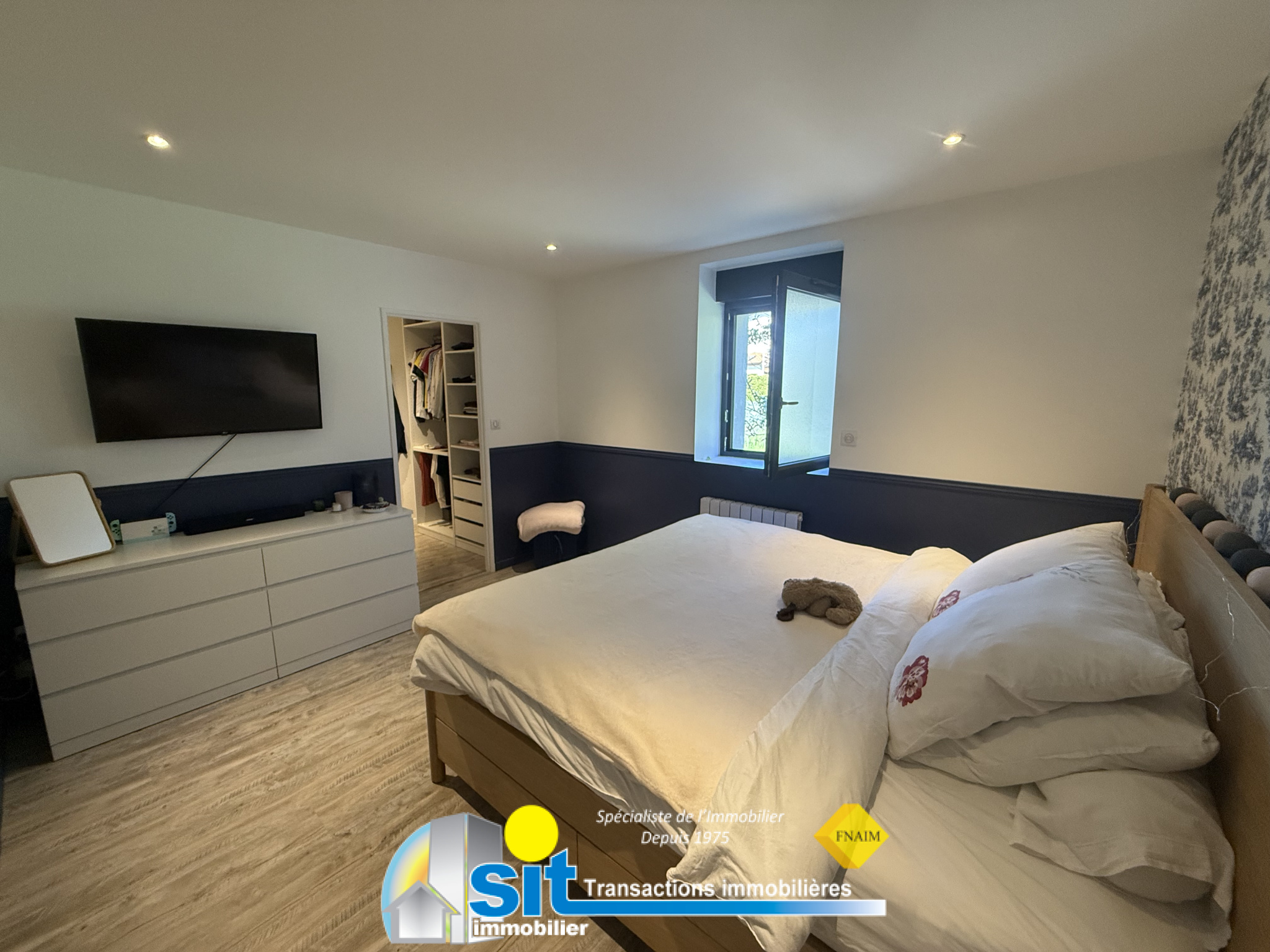 La pièce principale fait 47m2 et comprend une cuisine américaine équipée ouverte sur le séjour, ainsi qu'un cellier/buanderie.Il y a un total de 3 chambres, dont une avec dressing et salle de bains attenante, plus un bureau.La maison dispose également d'une autre salle de bains et 3 toilettes.