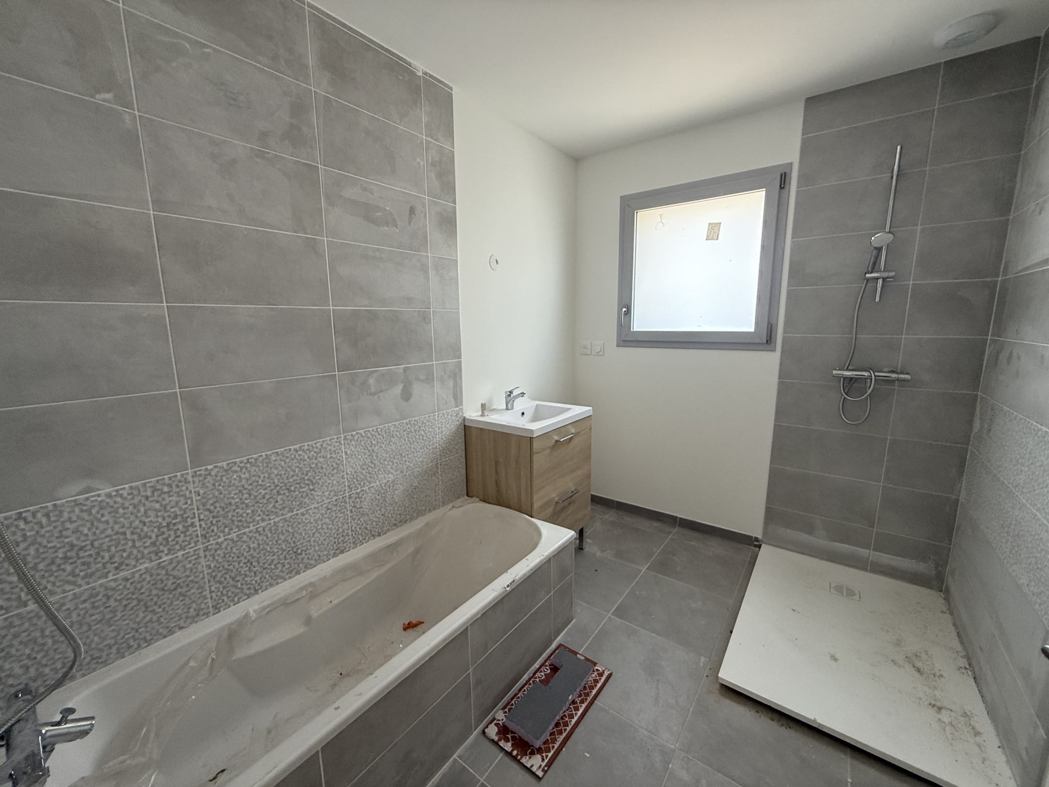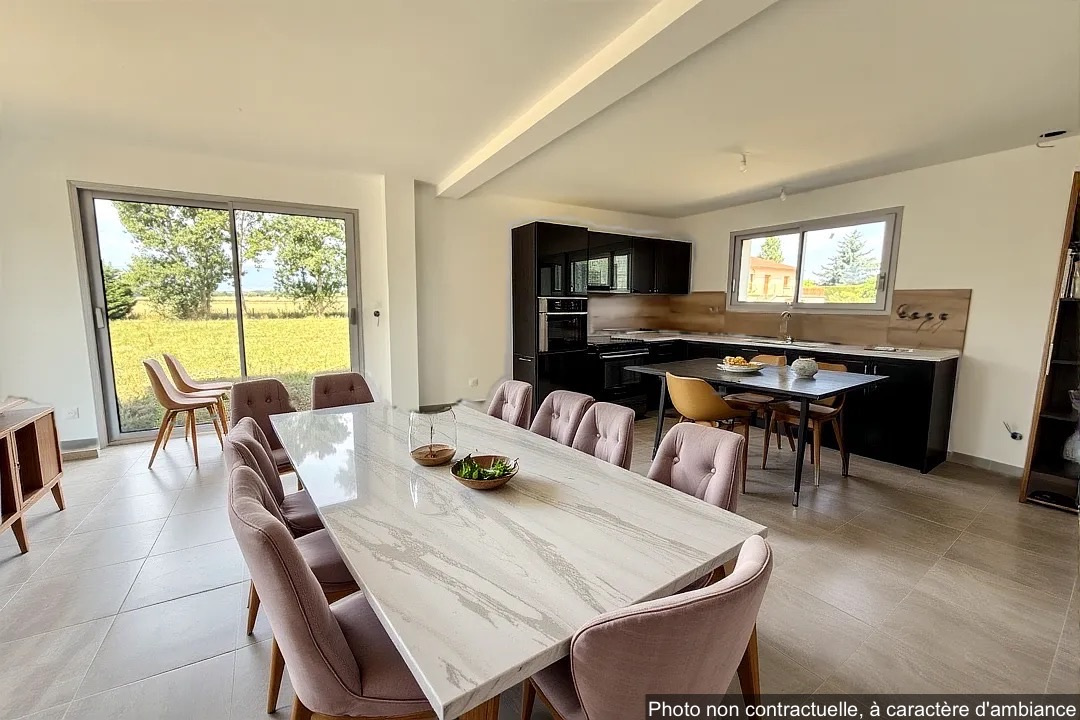 SIT IMMOBILIER vous propose à la VENTE cette VILLA individuelle, normes RE2020, en FRAIS DE NOTAIRE REDUITS d'environ 100m2 HABITABLES, offrant une pièce à vivre lumineuse de 45m2 avec cuisine équipée ouverte sur séjour, 3 CHAMBRES avec placards, salle de bains aménagée (baignoire + douche), 2 wc (poss. 2ème salle d'eau) et garage attenant.