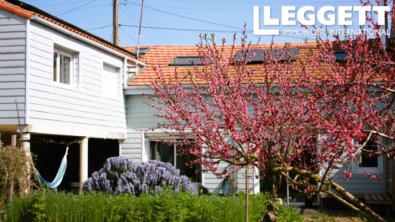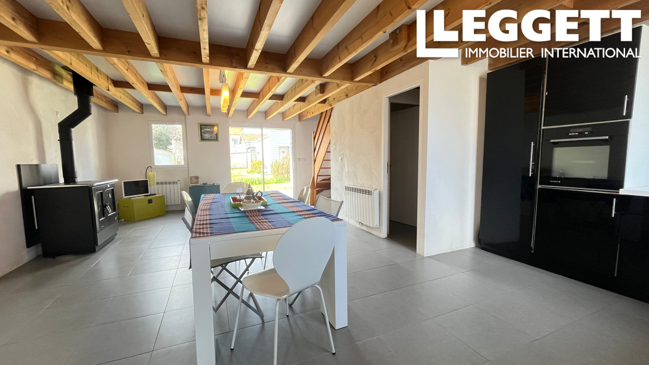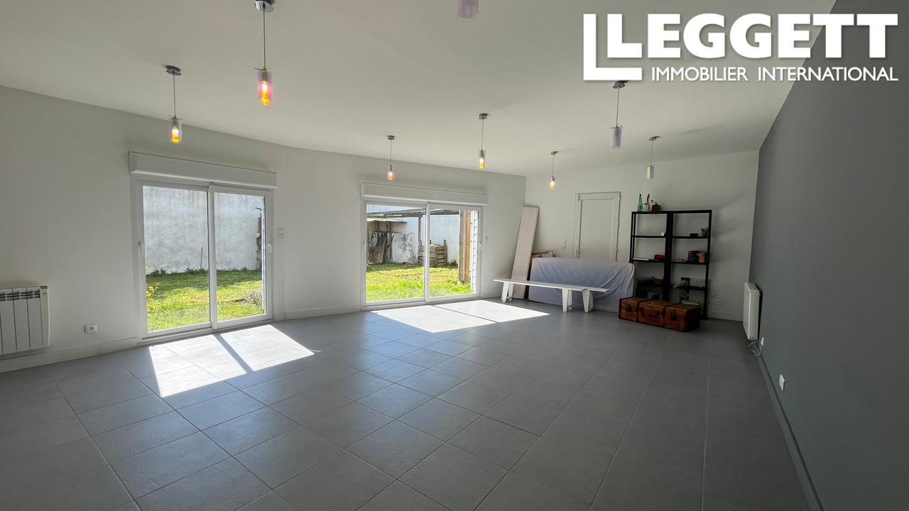A25972PHC17 - Situé dans un quartier calme et pavillonnaire (zone franche), ensemble immobilier composé d'une maison 4/5 pièces (122 m²) comprenant : une séjour double avec sa cuisine entièrement équipée, une chambre de plain pied avec sa salle de bains, placards, et un wc séparé.