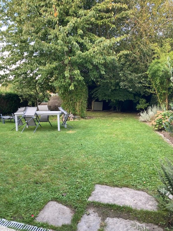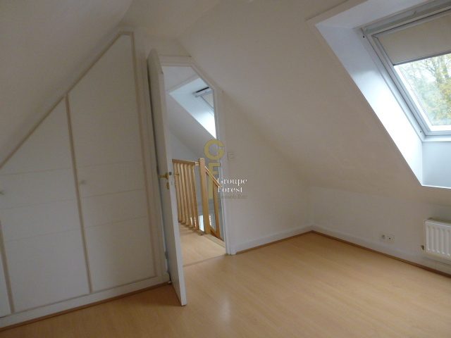 Etage : 2 chambres avec placards, salle de bains, wc séparé, placard de rangement.Jardin avec accès rue.