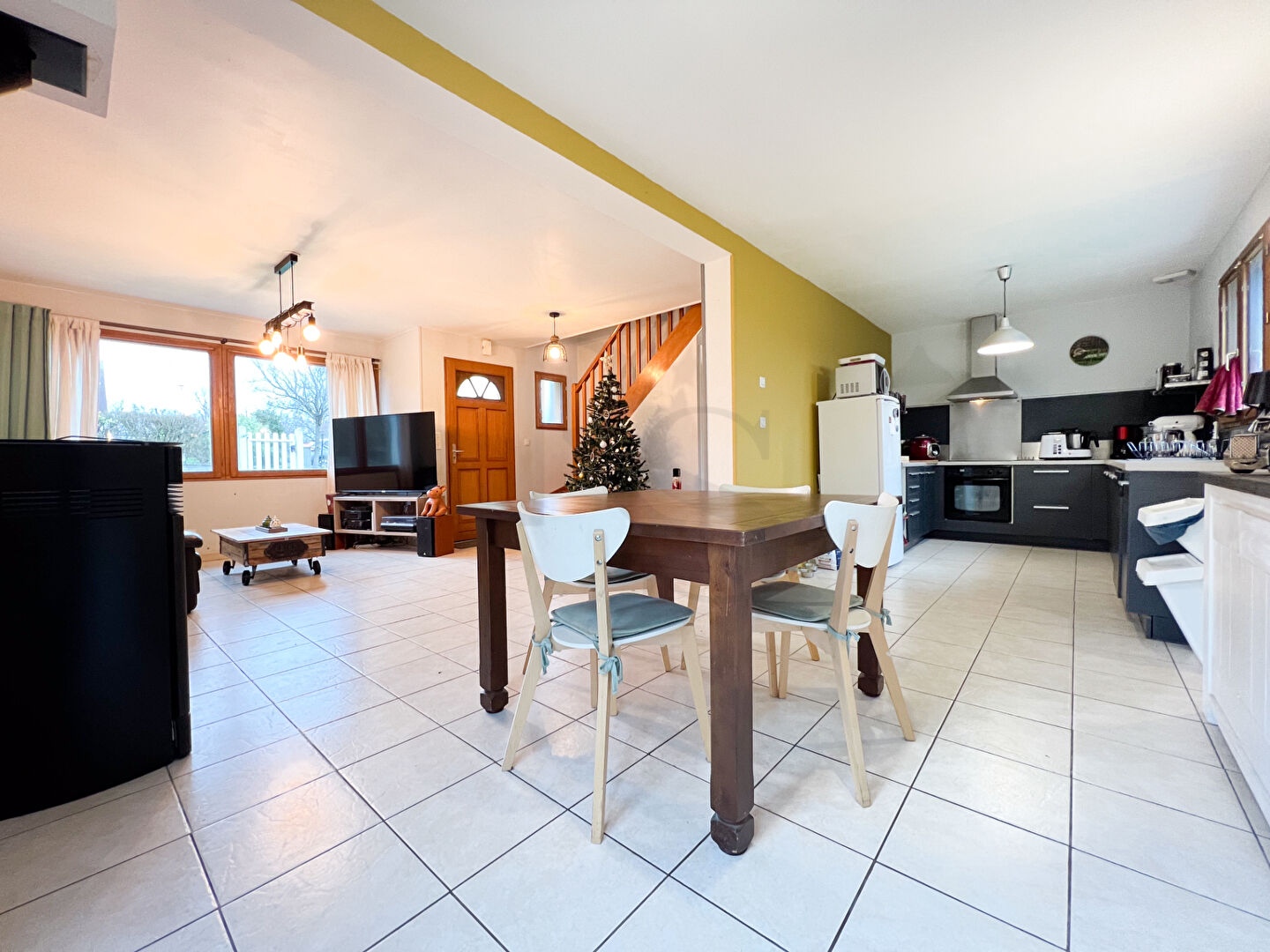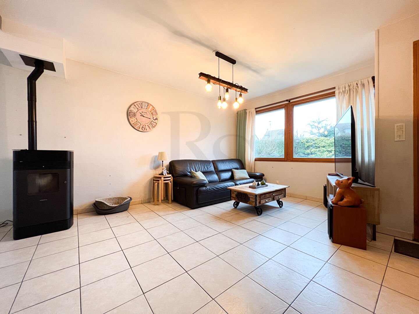 Le poêle à granulés dégage une atmosphère chaleureuse.