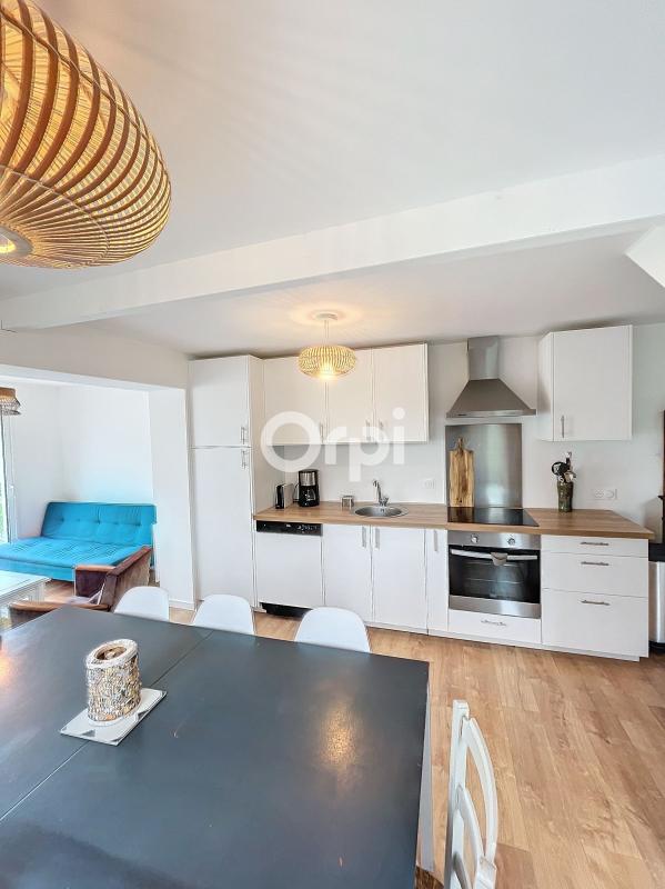 Ensemble immobilier en parfait état, comprenant une maison principale dotée d'une belle pièce à vivre, et sa cuisine équipée, une salle de bains, wc séparé, une chambre avec salle de douche, à l'étage deux chambres sous combles, une dépendance entièrement aménagée en studio avec kitchenette, salle d'eau et wc, idéale en secondaire.