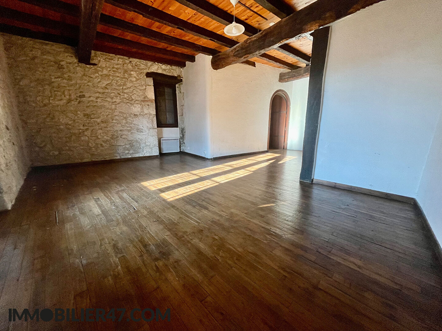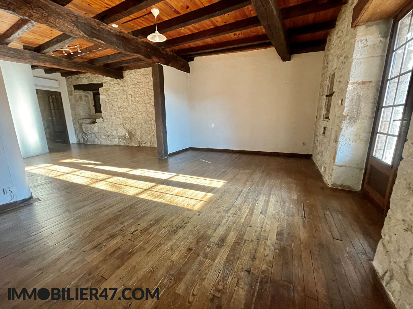 Exclusivité Prayssasimmo, dans le bourg de Laugnac, à moins de 15 minutes d'Agen et de Villeneuve sur Lot. Idéal investisseurs, maison de village en pierre de type 2 avec jardin comprenant en rez-de-chaussée, cuisine aménagée et séjour,; à l'étage, vous profiterez d'une grande chambre de 30 m² divisible donnant sur une terrasse couverte et privative, ainsi qu'une salle de bain avec douche et baignoire.. Vous disposerez également d'une terrasse donnant sur un jardin de 100 m² environ. Le tout sur une parcelle de 250 m².