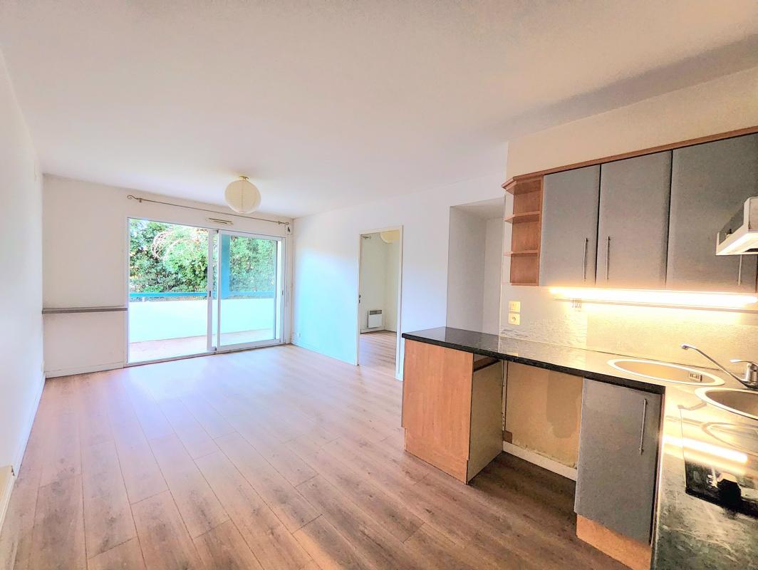 Il se compose d'un lumineux séjour avec cuisine ouverte et aménagée, donnant accès à une terrasse couverte de 10 m² sans vis-à-vis, avec une jolie vue sur la verdure. Côté nuit, une chambre avec placard intégré et une salle d'eau récemment rénovée complètent l'espace.