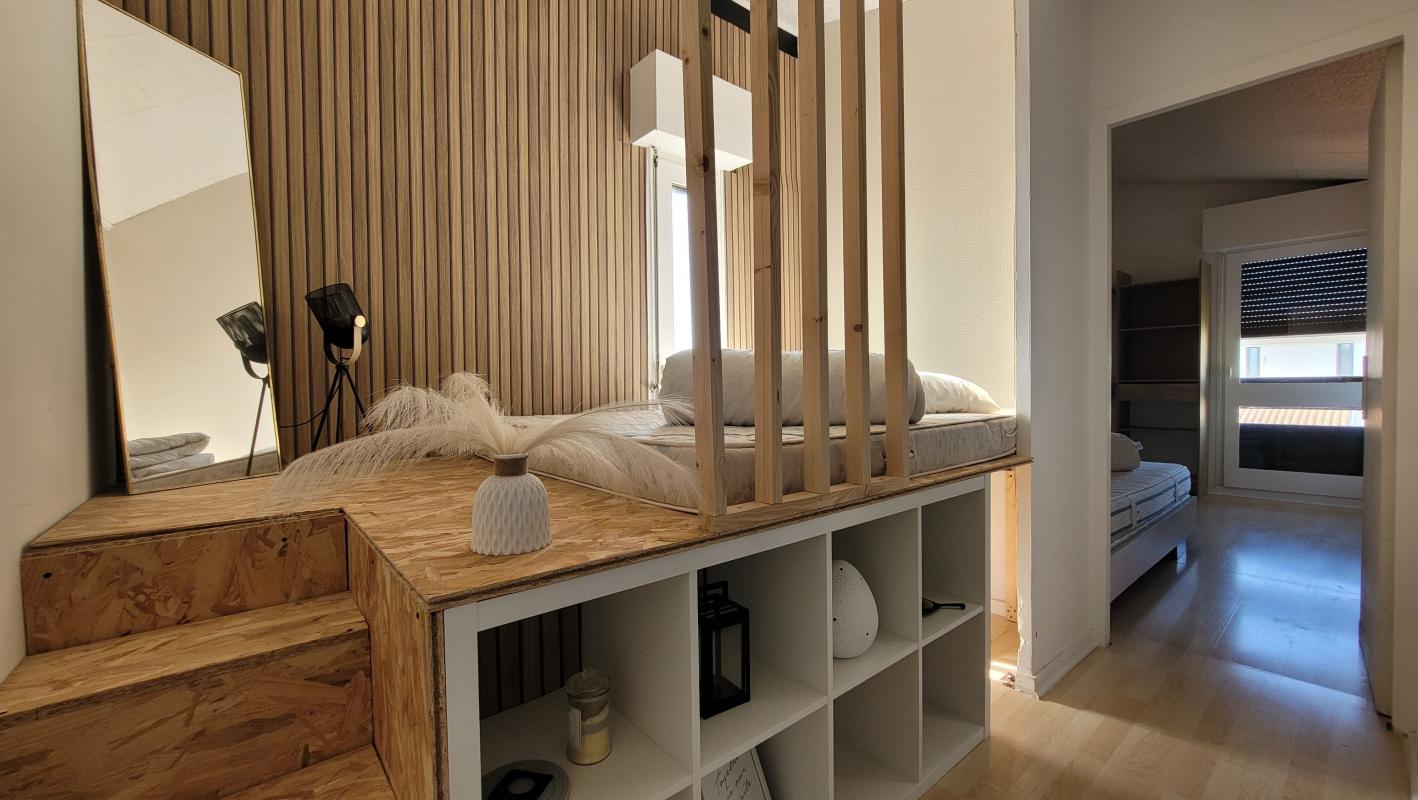 À l'étage, une deuxième chambre et une mezzanine aménagée en coin nuit offrent un espace nuit supplémentaire, parfait pour accueillir famille et amis.