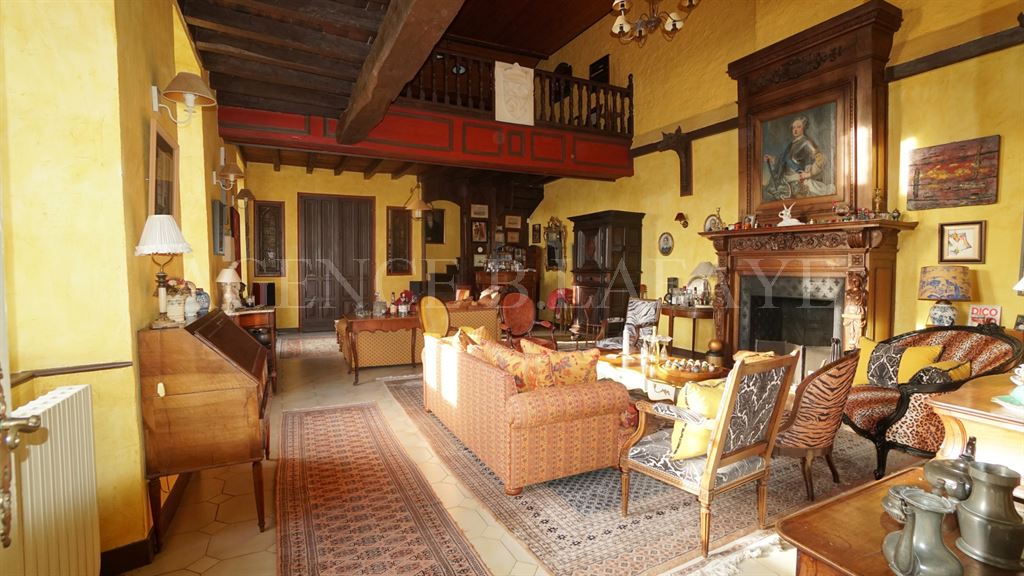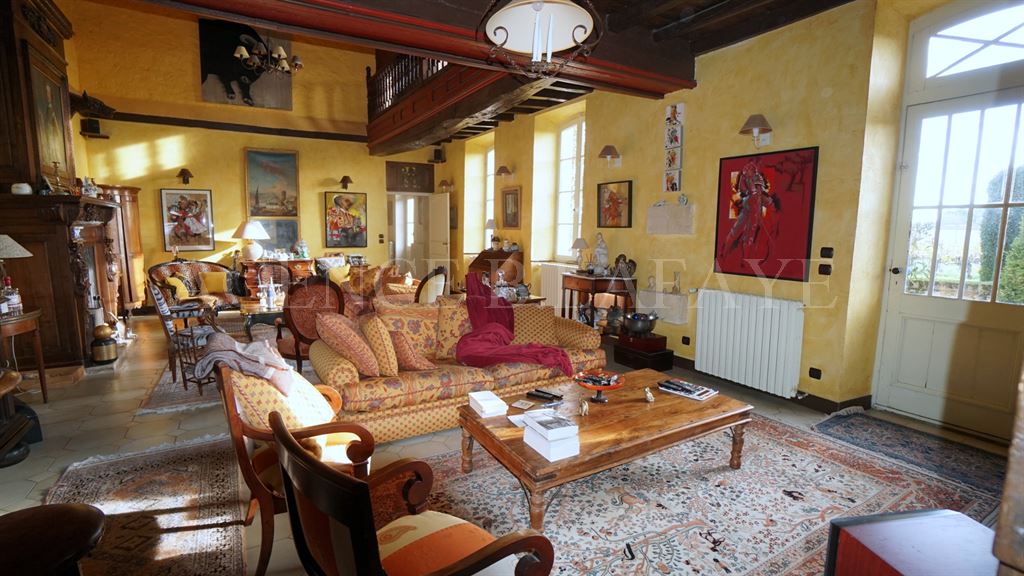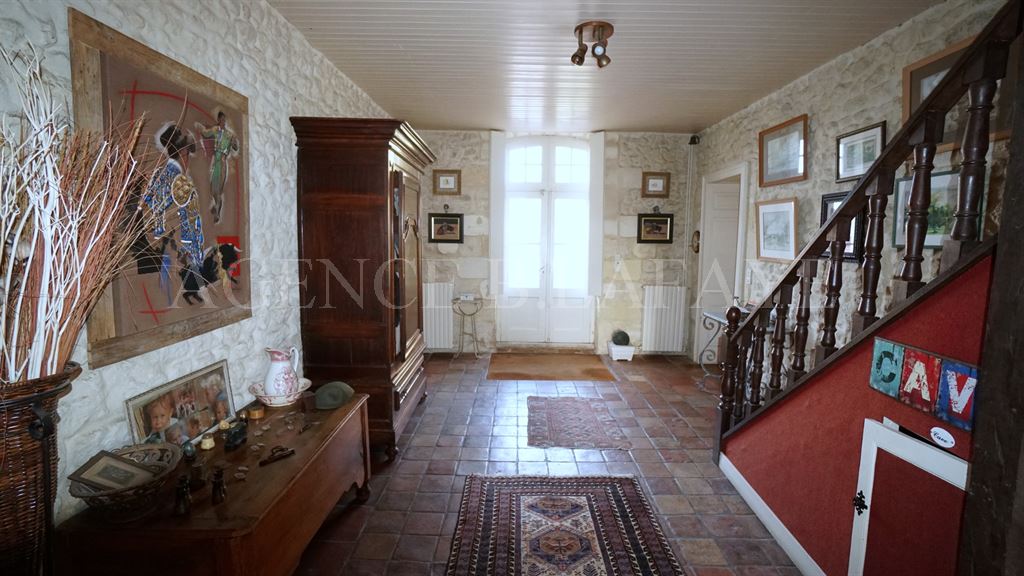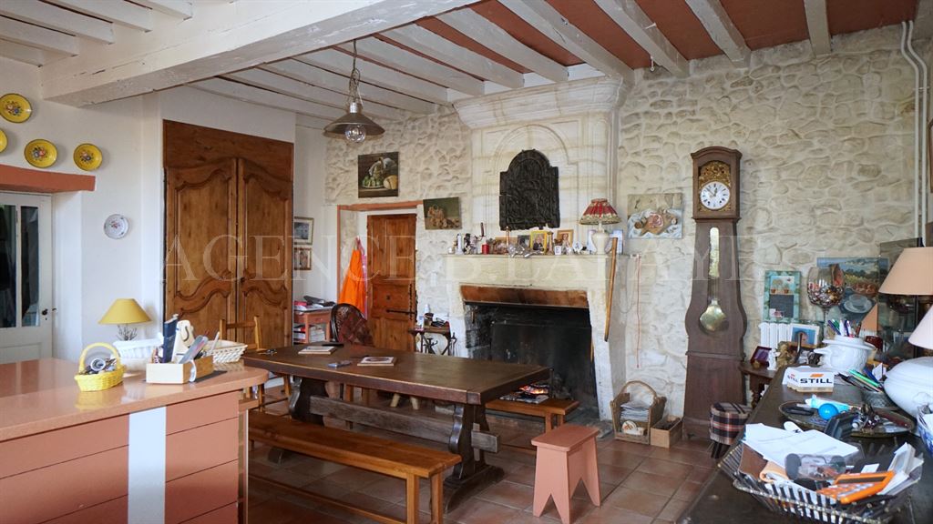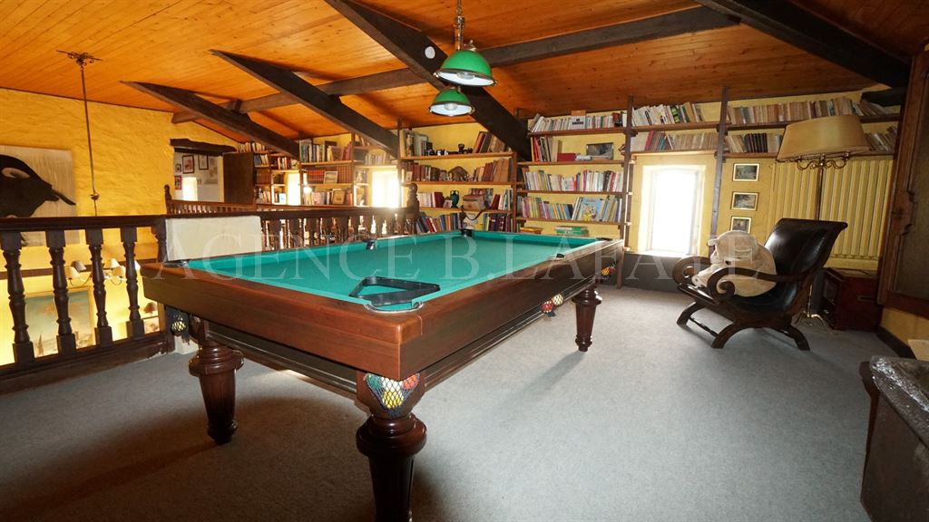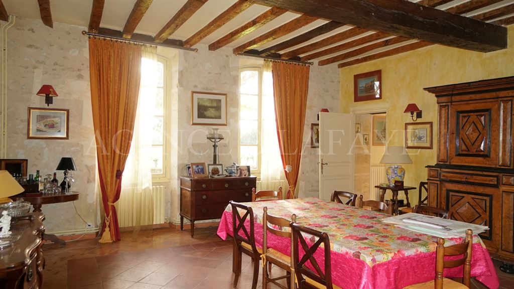 Belle maison familiale de 480 m² habitables comprenant un vaste hall d’entrée, 3 salons en enfilade, salle à manger, bureau, nombreuses cheminées pierre d’époque, 6 chambres, 2 salles de bains, 2 salles d’eau, 4 wc, 2 dressings. Piscine couverte, pool house, terrasse. Chai, garage, atelier, écurie, un gîte rural, grande salle à aménager. Parc, pré et terre d’environ 8ha en bordure de ruisseau. Nombreuses possibilité d’aménagement. Beaucoup de charme et d’authenticité – Très agréable maison à vivre.