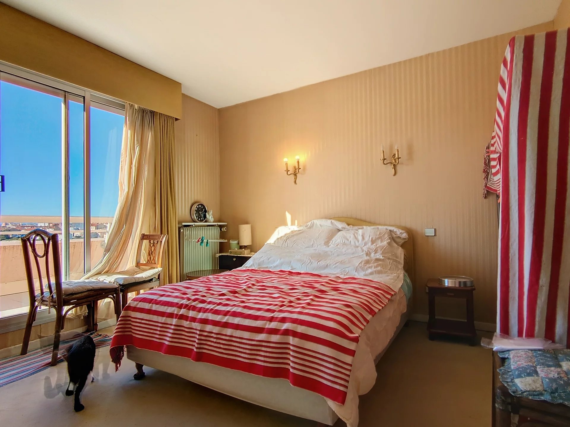 Perpignan palais des congrès, rare, DERNIER ÉTAGE type roof top! Dans résidence de standing, joli t3 à rénover avec grande terrasse parking privatif à voir absolument ! Vue imprenable sur toute la ville, vendu meublé! Garage possible en plus du PRIX