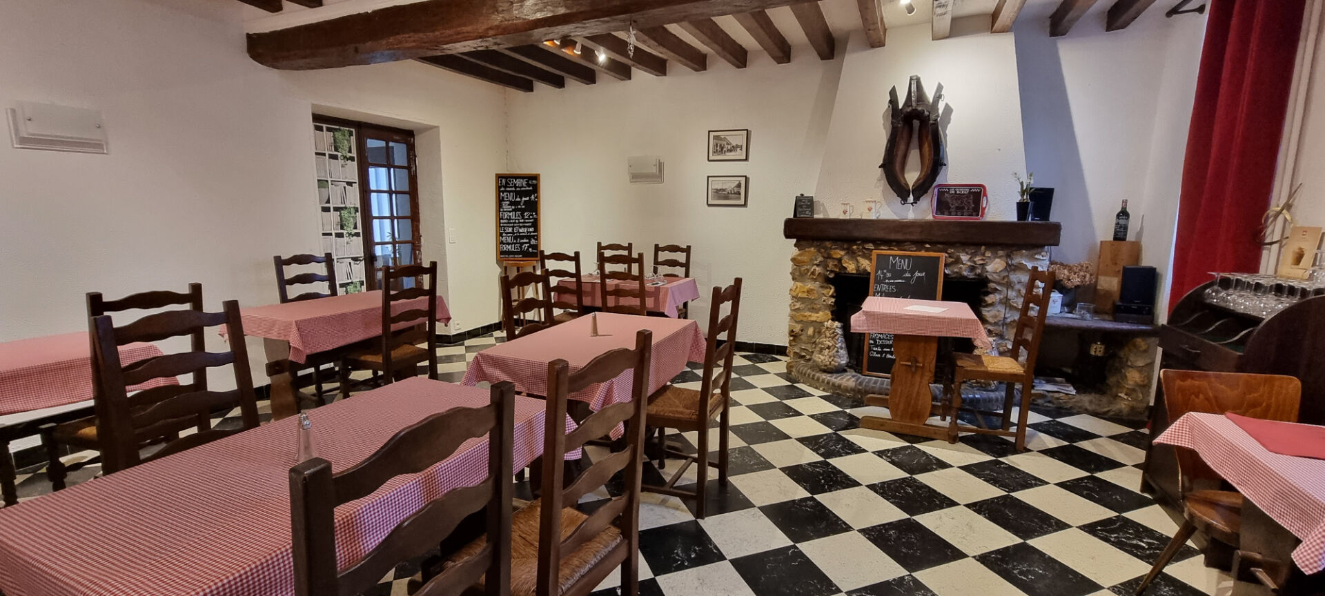 Le restaurant comprend une salle avec le bar, deux salles dont une avec cheminée.