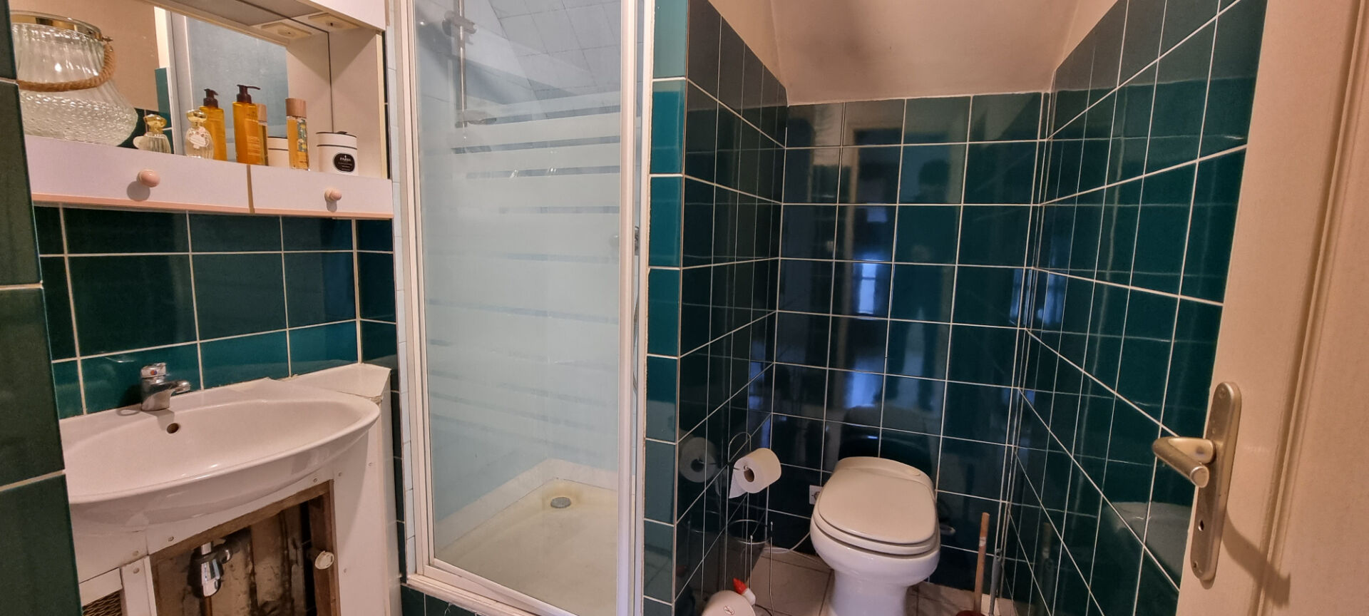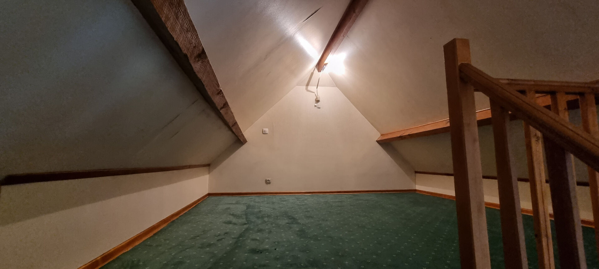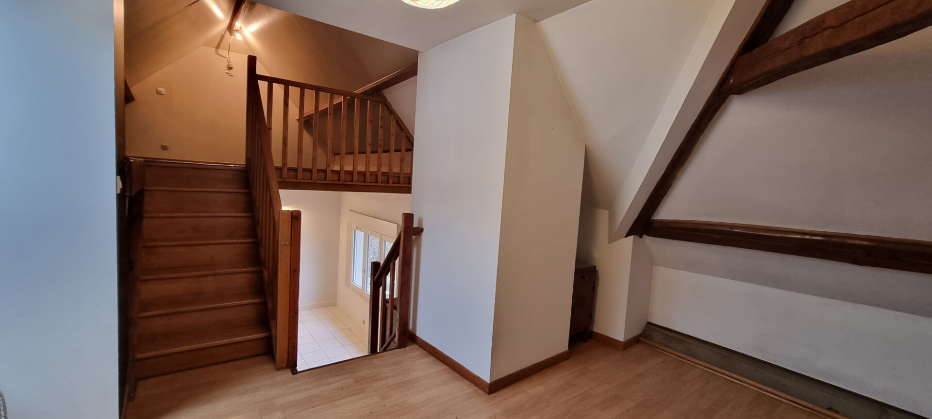 Un appartement avec au rez-de-chaussée , une entrée ,une pièce. A l'étage: salon -séjour, trois chambres, une salle d'eau avec WC.