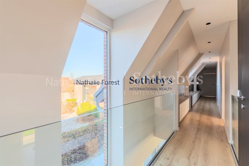 Un escalier contemporain en verre mène à l’étage où se découvre une somptueuse suite parentale sous toit cathédrale, de près de 50 m² : chambre, salle de bains complète, dressings aménagés et toilettes. Trois autres chambres (13 à 15 m²), toutes avec rangements, ainsi qu’une salle de bains familiale avec triple vasque, complètent l’étage.