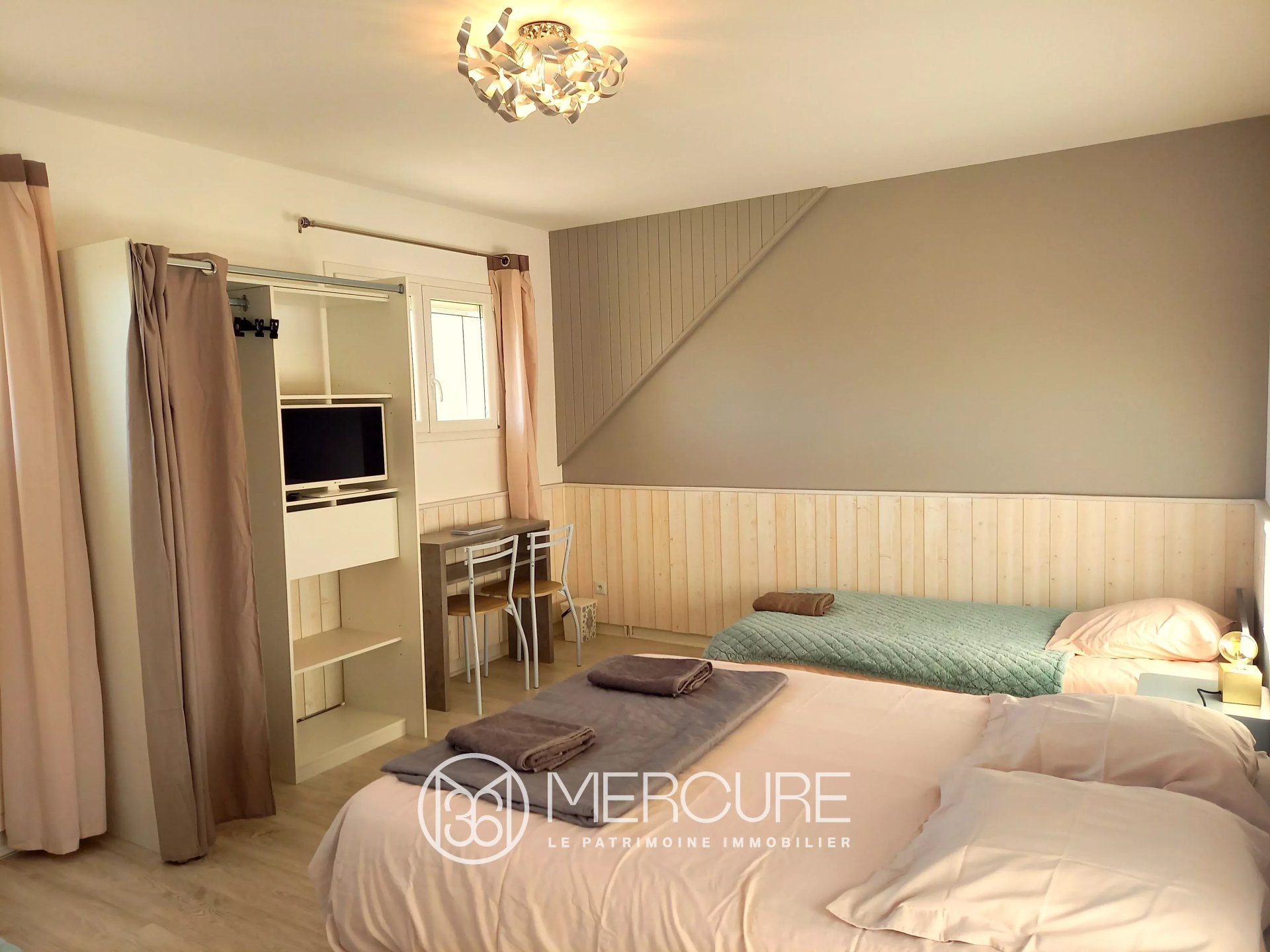 La maison est composée d’un salon, d’une salle à manger, d’une belle cuisine, de sept chambres, un bureau, cinq salles d’eau et sept toilettes. Une vaste cave. La configuration de la maison peut permettre une activité locative, en gîte ou chambre d’hôtes.