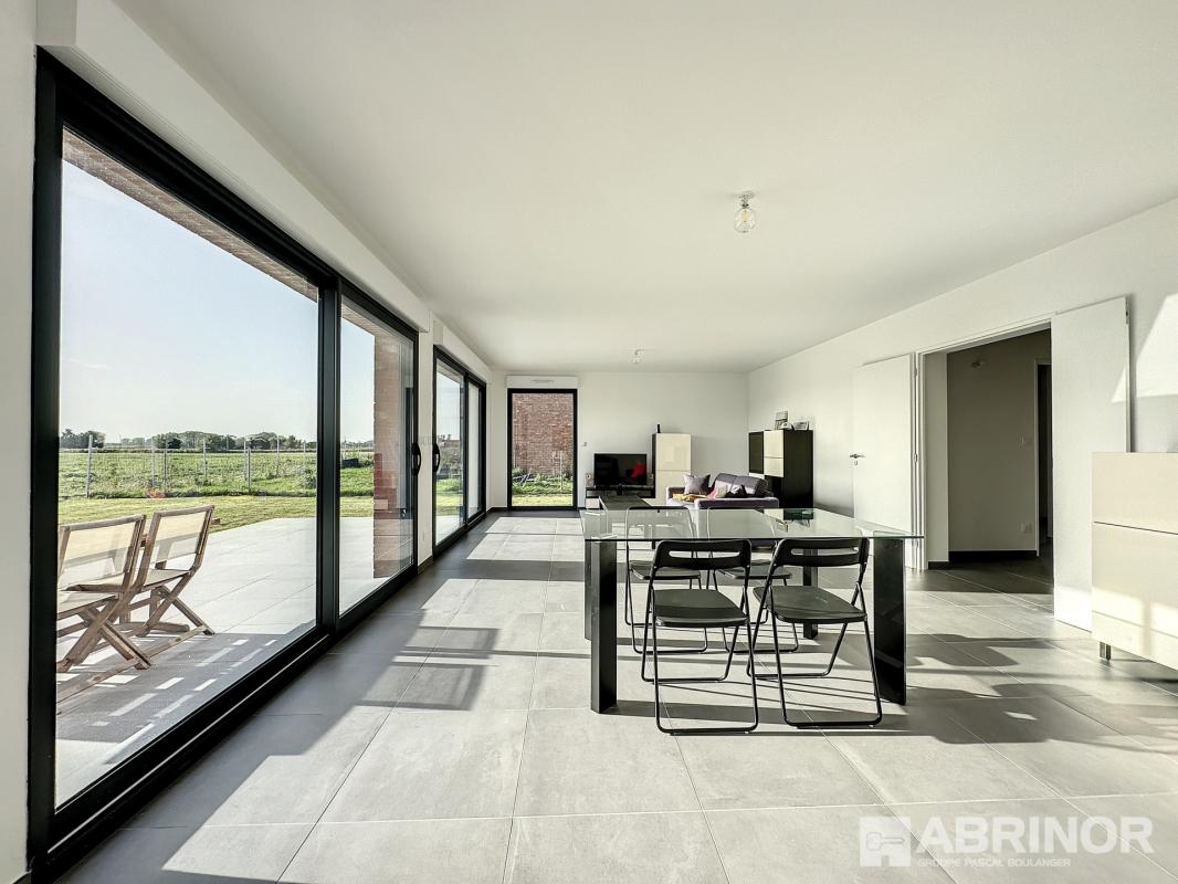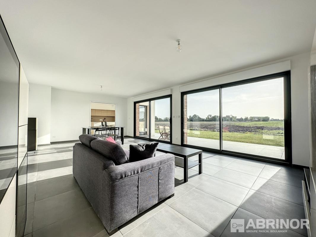Emplacement idéal à Comines Sainte Marguerite, en bordure de campagne pour cette maison d'architecte individuelle de 2023 de s-p-pied composée d'une grande entrée donnant accès au salon/séjour lumineux avec vue sur le jardin, cuisine équipée, cellier, wc, et 1 chambre en rez-de-chaussée avec salle de bains.
