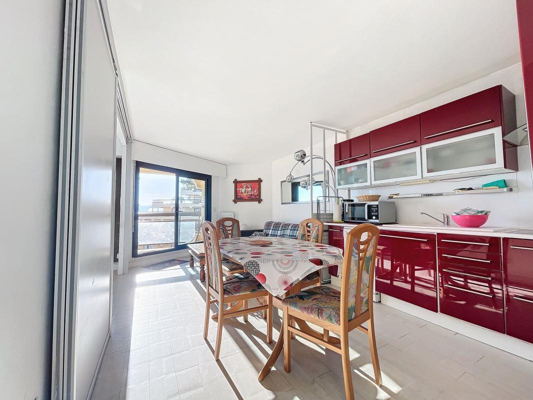 FREJUS PLAGE : appartement au 4ème étage avec ascenseur résidence de standing front de mer. Il se compose d'un hall d'entrée avec placard, une cuisine ouverte sur séjour donnant sur une belle terrasse exposée sud/ouest, une chambre avec placard , une salle d'eau et WC séparé. Climatisation réversible. Superbe vue mer idéal résidence secondaire.