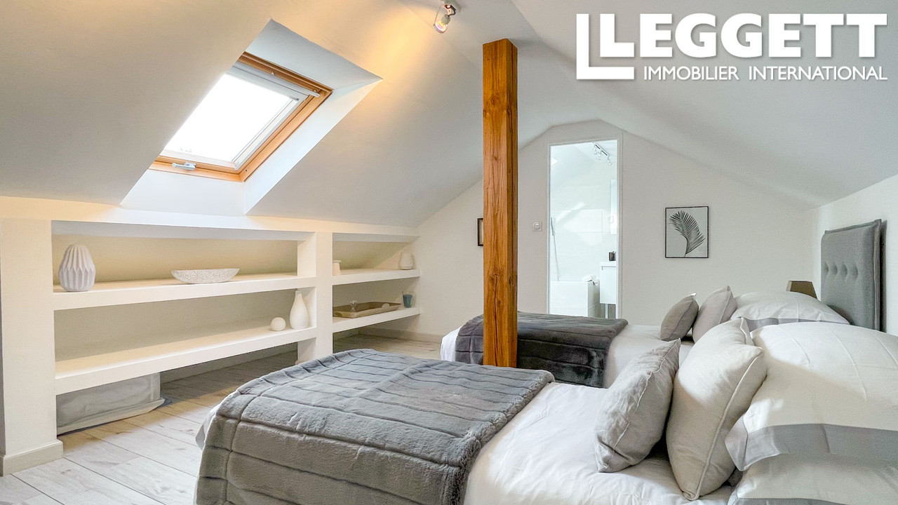Au 1er étage, avec l'immense terrasse qui surplombe le jardin et la piscine, se trouve un grand séjour/cuisine ouverte ultra-moderne, design et équipée, et une seconde chambre en suite avec dressing. Sous les combles, deux grandes chambres en suite également, avec de très beaux volumes.