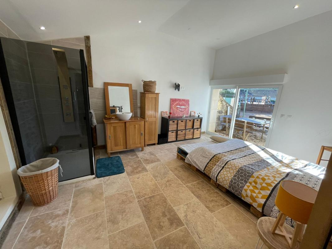 Côté extérieur la maison dispose d'un beau terrain plat arboré, avec piscine hors sol en bois, terrasse de 35m2, deux dépendances de 12m2 faisant office de rangement.