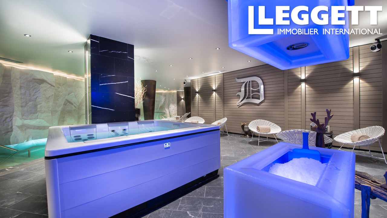 Un spa avec piscine, jacuzzi, sauna, hammam, salle de massage et salle de sport.