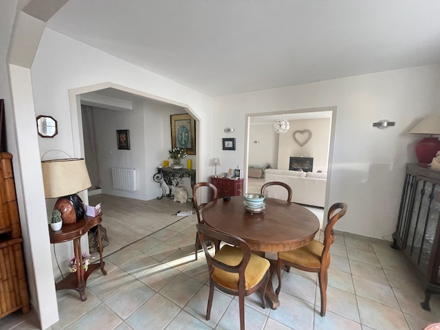 Au 1er étage : entrée, salon avec cheminée et insert, cuisine aménagée et équipée ouverte sur salle à manger, salle d'eau et WC.