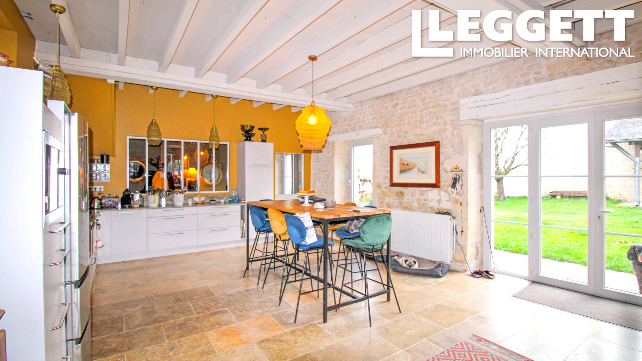 A26853CPI17 - Cette spacieuse maison de 5 chambres se trouve à quelques minutes à pied des boutiques, restaurants et du marché bihebdomadaire de St Jean d'Angely (future ville thermale). Elle a été restaurée en combinant les aspects pratiques de la vie moderne (double vitrage, chaudière à pellets Okofen) avec le charme historique d'une ancienne maison de l'une des principales familles de cognac de la région.