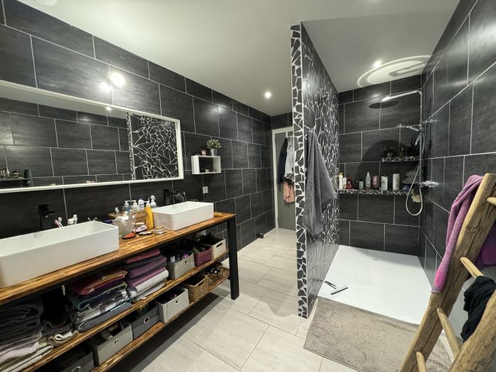 Située dans un environnement paisible, à l'abri des regards, tout en ayant un accès direct et proche des commodités, cette magnifique bâtisse est implantée sur son parc entièrement clos de plus de 5700m². Proposant actuellement plus de 175m² habitables et offrant une vie de plain-pied, elle dispose au total : une grande cuisine dinatoire, une belle pièce de vie avec poêle à granulés, cinq chambres, deux salles de bains et deux WC. Possibilité d'aménager des surfaces de grenier supplémentaire. Son sous-sol total propose un double stationnement et peut accueillir des véhicules hauts. La maison s'étend sur des généreux volumes, offrant un espace de vies pour accueillir une grande famille et vos amis. Vous serez immédiatement séduit par l'atmosphère chaleureuse et accueillante qui se dégage de chaque coin de cette maison. Mélangeant le charme indéniable de l'ancien et moderne ; et dotée de tout le confort indispensable (chauffage central par le biais d'une chaudière granulé, électricité aux normes, double vitrages) c'est un JOLI COUP DE COEUR ASSURÉ !