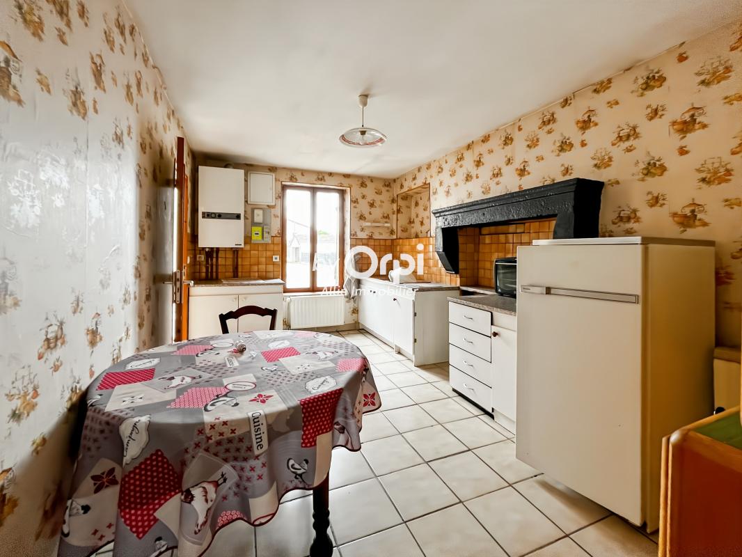 Réf 39880 : Maison de ville proche médecin, pharmacie, épicerie, coiffeur, écoles de la maternelle au collège, avec transports scolaires pour les lycées. Cette maison est composée de plain pied, d'une entrée, d'une cuisine, d'une grande salle a manger -salon, de 3 chambres, d'une salle de bains et d'un WC. Le grenier peut être aménagé en totalité. Vous pourrez profiter du petit terrain clos avec un puit sécurisé, et également d'un garage et deux caves.
