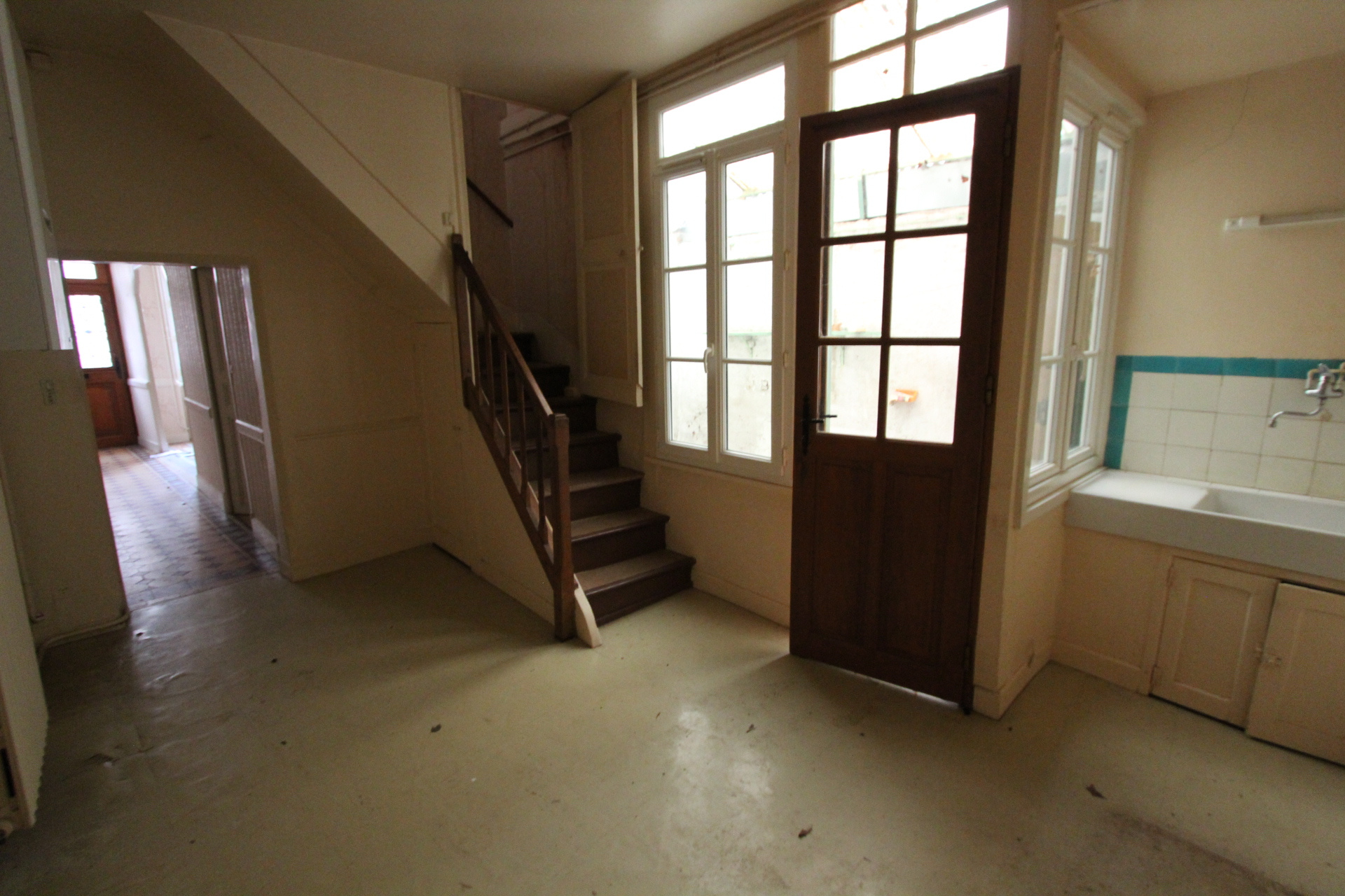 La seconde, attenante : une maison de ville d'env 40m2 hab., comprenant en rez de chaussée : une pièce de vie avec coin cuisine et donnant sur courette d'env 17m2 et dépendance ouverte d'env 18m2, WC.