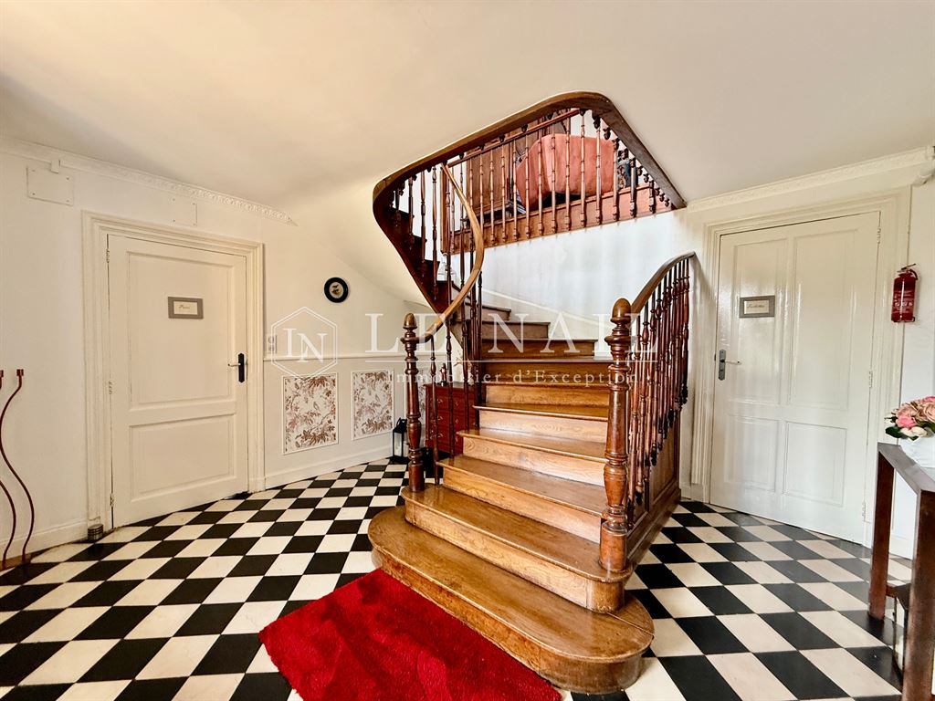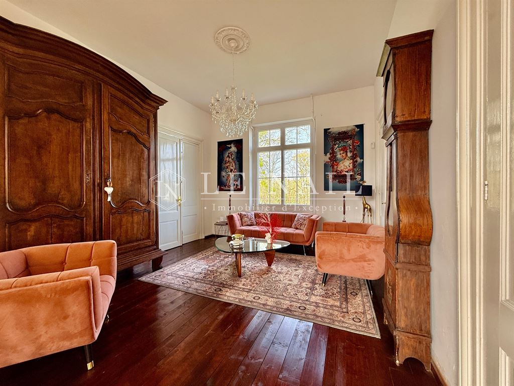 Au premier étage, vous découvrirez de lumineux espaces de vie, un palier mène à un petit salon, tel un boudoir, séparant un double salon offrant une vue sur la piscine d'un côté, et une première suite avec sa salle d'eau attenante de l'autre. Toutes les pièces bénéficient d'une belle hauteur sous plafond, ajoutant une sensation d'espace et de grandeur. De nombreux détails architecturaux du XIXe siècle tels les cimaises, corniches et autres boiseries confèrent au lieu une atmosphère unique.