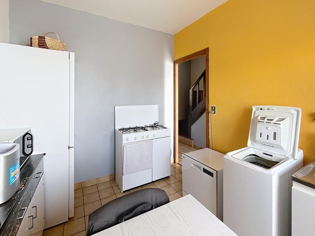 2ème appartement F6 composé d'une cour privative avec accès cave, entrée dans pièce de vie, cuisine aménagée, buanderie, salon, dégagement accès étage. Au 1er, 2 chambres, une grande salle de bains avec wc. Au 2ème étage, 2 chambres, un débarras.