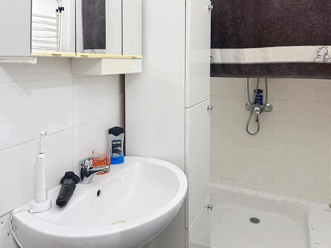 Commerce composé d'une pièce principale avec vitrine et un coin toilette.