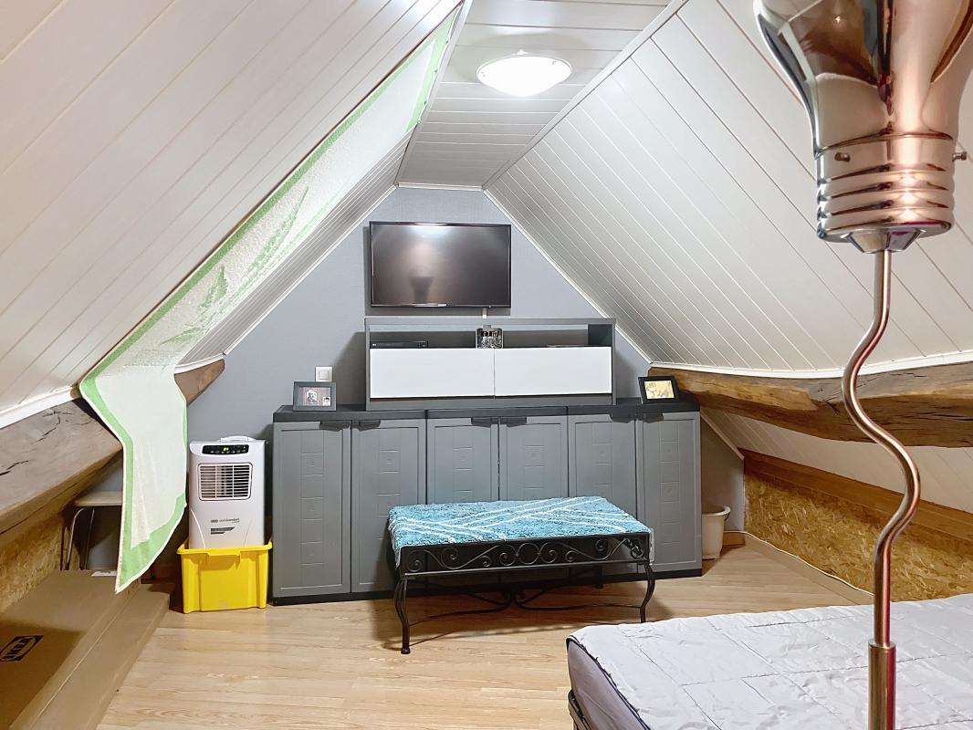 1er appartement F2 composé d'une entrée couloir, wc sous escalier, une cuisine, à l'étage, une salle d'eau wc, une chambre et au 2ème un espace nuit mansardé dans la partie grenier
