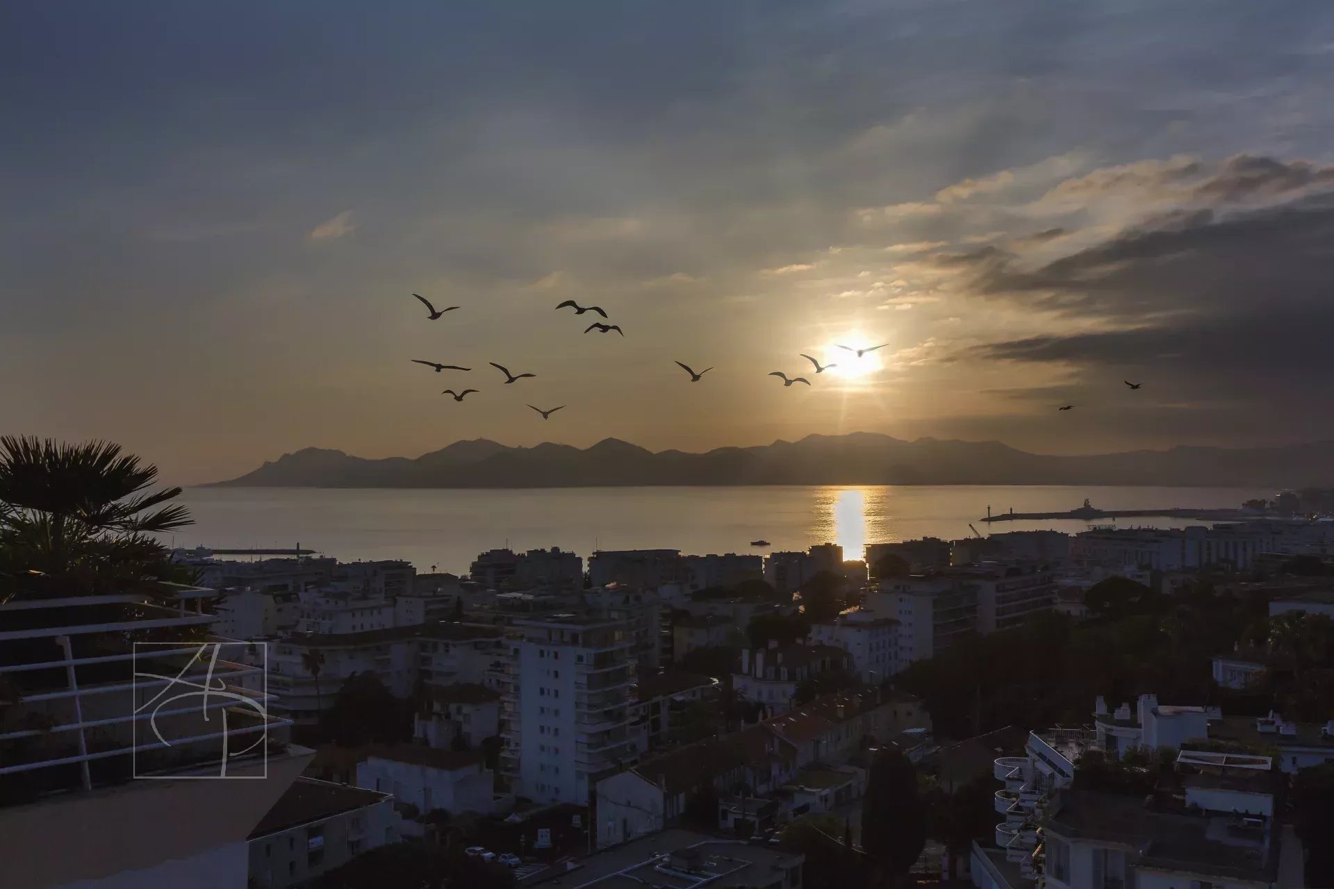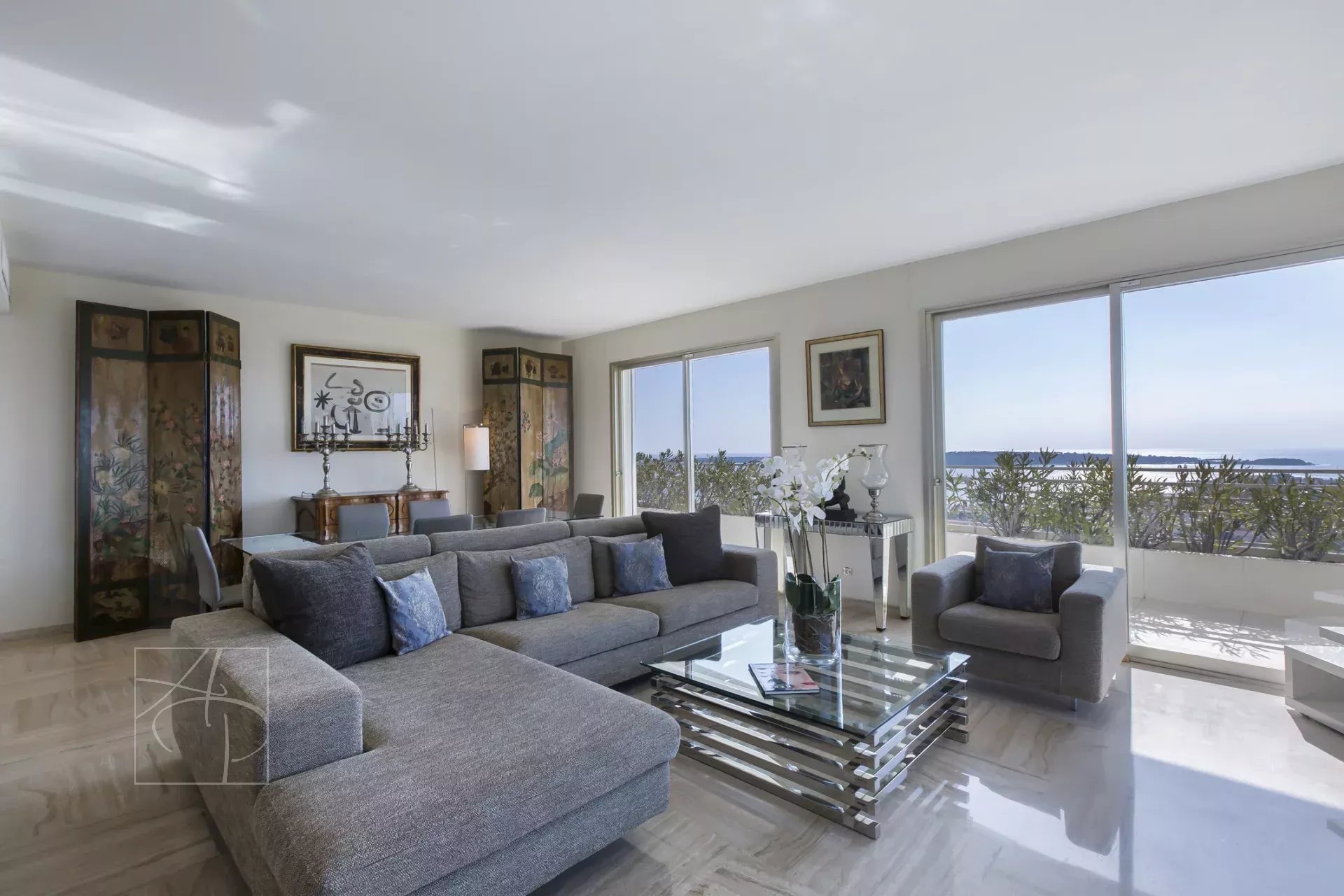 Dans luxueuse résidence très recherchée de Cannes secteur Basse Californie, splendide appartement 5 pièces bénéficiant d'une vue mer féérique sur la baie de Cannes, les iles de Lérins, jusqu'à l'Estérel, au calme absolu, comme sur un bateau