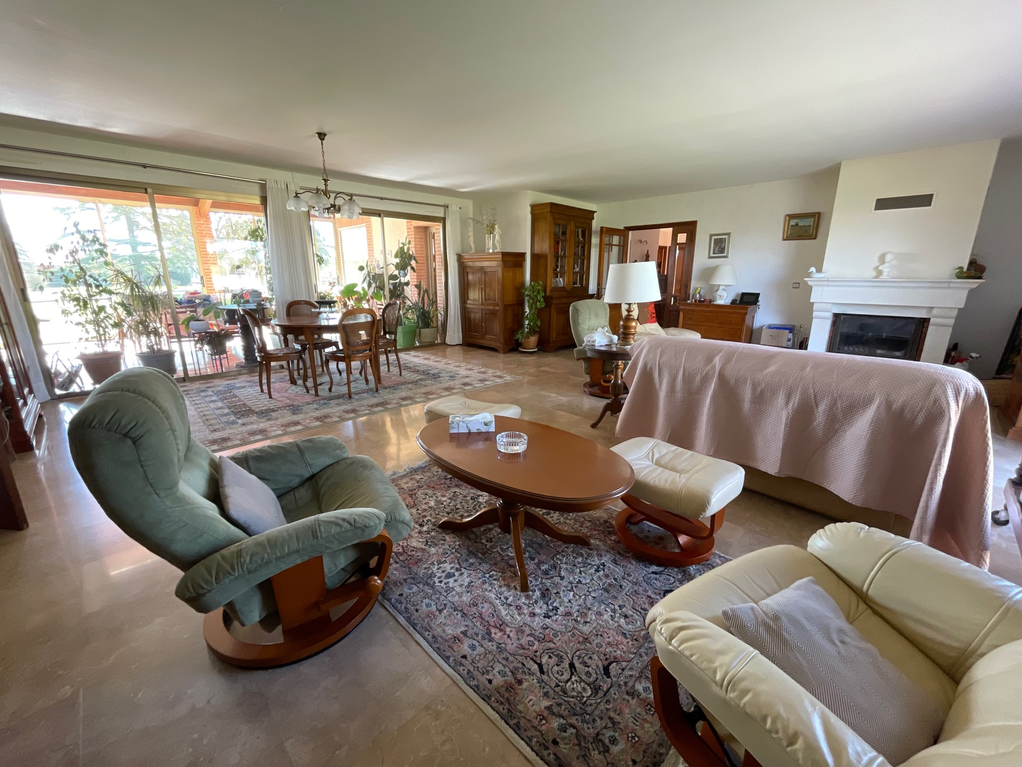 Intégral Immobilier : 16, Rue de la République - 31270 FROUZINS. 05.61.40.03.02 - O6 82 73 55 60. A 20min de Toulouse, Frouzins 31270, au sein d'une zone naturelle, rare sur le secteur, une maison individuelle de 235m2 habitable, sur plus de 4000m2 de parcelle. Cette construction traditionnelle de 1986, sur vide sanitaire, en bon état d'entretien, avec matériaux de qualité, bénéficie d'une piscine, ainsi qu'une dépendance de 80m2. Equipements : climatisation réversible, chauffage au sol gaz de ville (chaudière récente), menuiseries Alu double vitrage, fibre, tout à l'égout, et jardin avec puits. La maison se compose notamment de 4 grandes chambres, un salon séjour avec cheminée, vaste véranda de 28m2, et un double garage de 59m2. Villes proches : Cugnaux, Villeneuve Tolosane, Muret, Fonsorbes, Roques, Portet sur Garonne, Tournefeuille, Colomiers... 'Les informations sur les risques auxquels ce bien est exposé sont disponibles sur le site Géorisques http://www.georisques.gouv.fr'. 06.82.73.55.60.