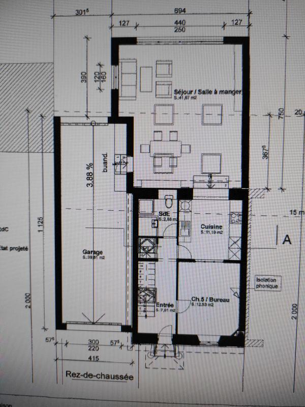 Un permis d'agrandir a été accordé pour transformer la maison avec au rez-de-chaussée hall d'entrée, cuisine ouverte sur séjour, chambre, salle d'eau, WC. Au premier étage quatre chambres dont une suite parentale avec salle de bains, salle d'eau, WC.