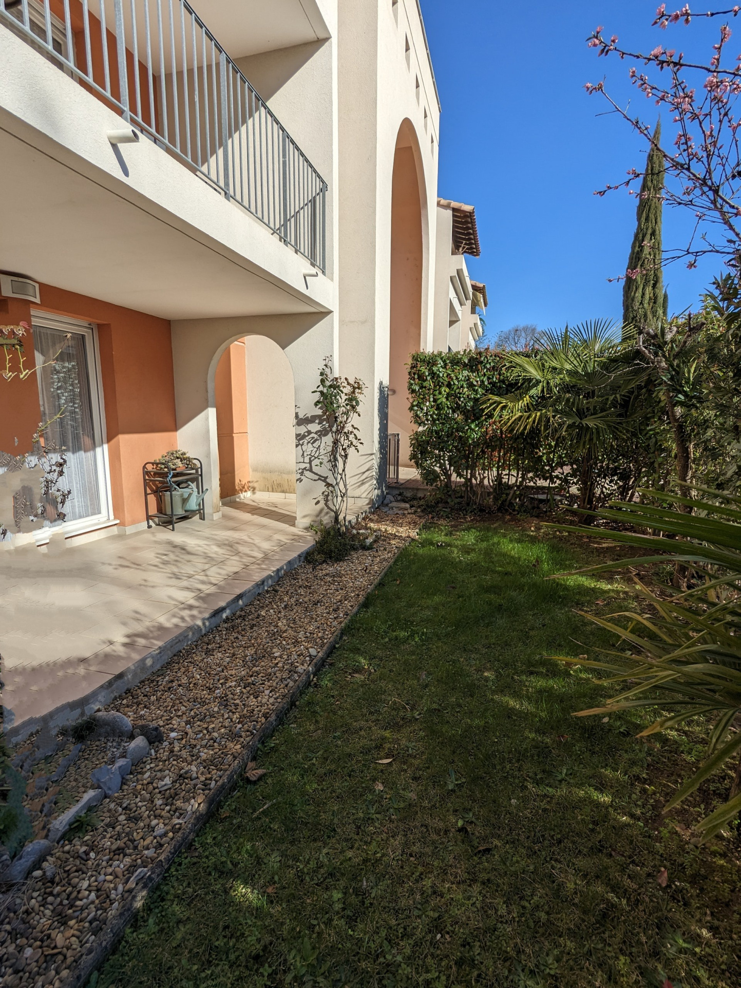 Dans résidence récente fermée avec ascenseur (2007) appartement rez-de-chaussée T3 81 m2 + véranda 8 m2 terrasses jardin