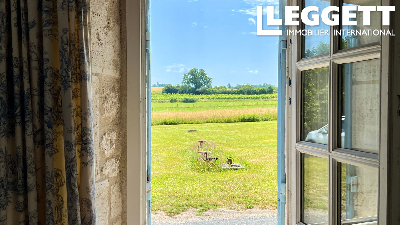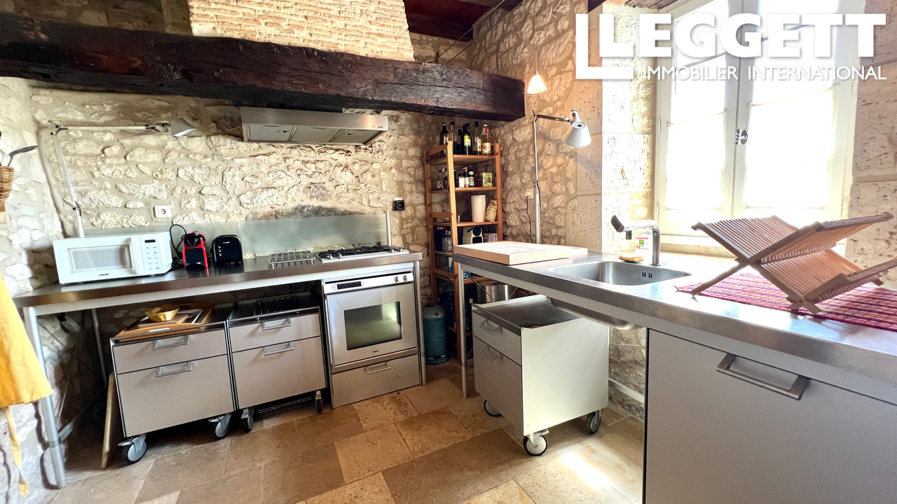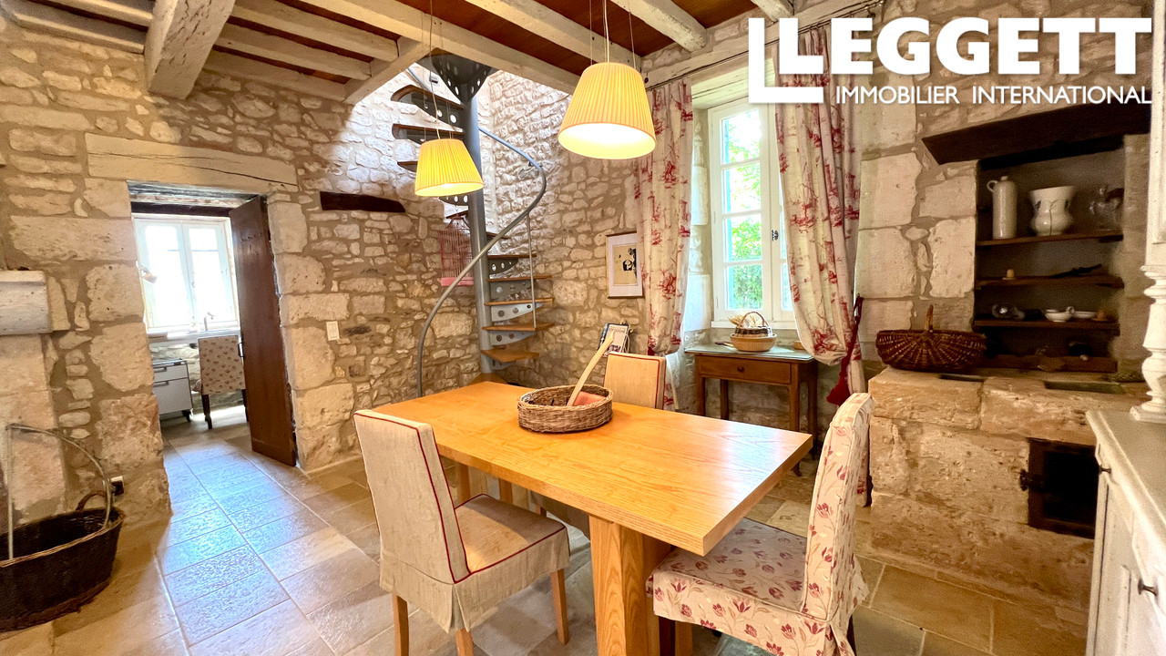 A27574GJP24 - Un pied-à-terre restauré avec goût, petit et plein de caractère, belles poutres, pierres apparentes. Les pièces de vie de plain-pied, 2 chambres et salles de bains, avec la troisième chambre à l'étage dans le pigeonnier. Une cour et petit jardin privé, bien située tranquillement dans un petit hameau avec des vues sur les vignes. Sigoulés avec tous commerces 5 minutes.