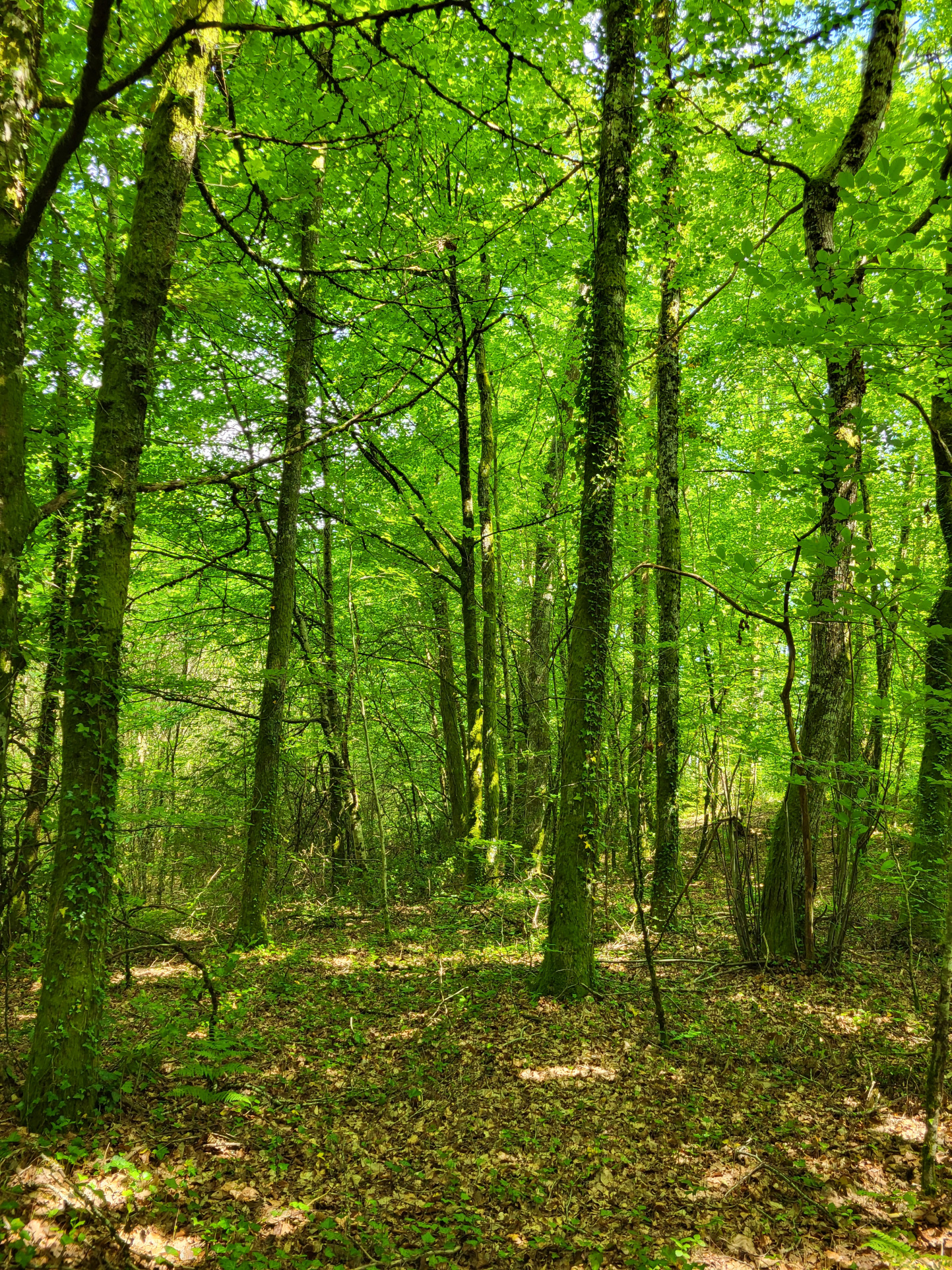 Grand terrain boisé de 27 664 m2. Source en fond de terrain.