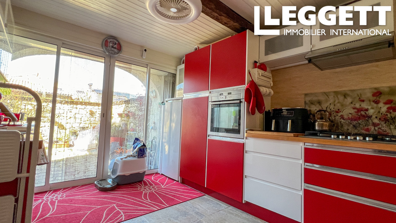A27214GJP24 - Une maison de village avec un bel escalier en pierre et une impressionnante cheminée en pierre, double vitrage, cuisine nouvellement installée, 3 chambres et une cour exterieur. Le restaurant et le magasin du village sont accessibles à pied. La bastide médiévale et animée d'Eymet se trouve à seulement 4 km et l'aéroport de Bergerac à 20 km.